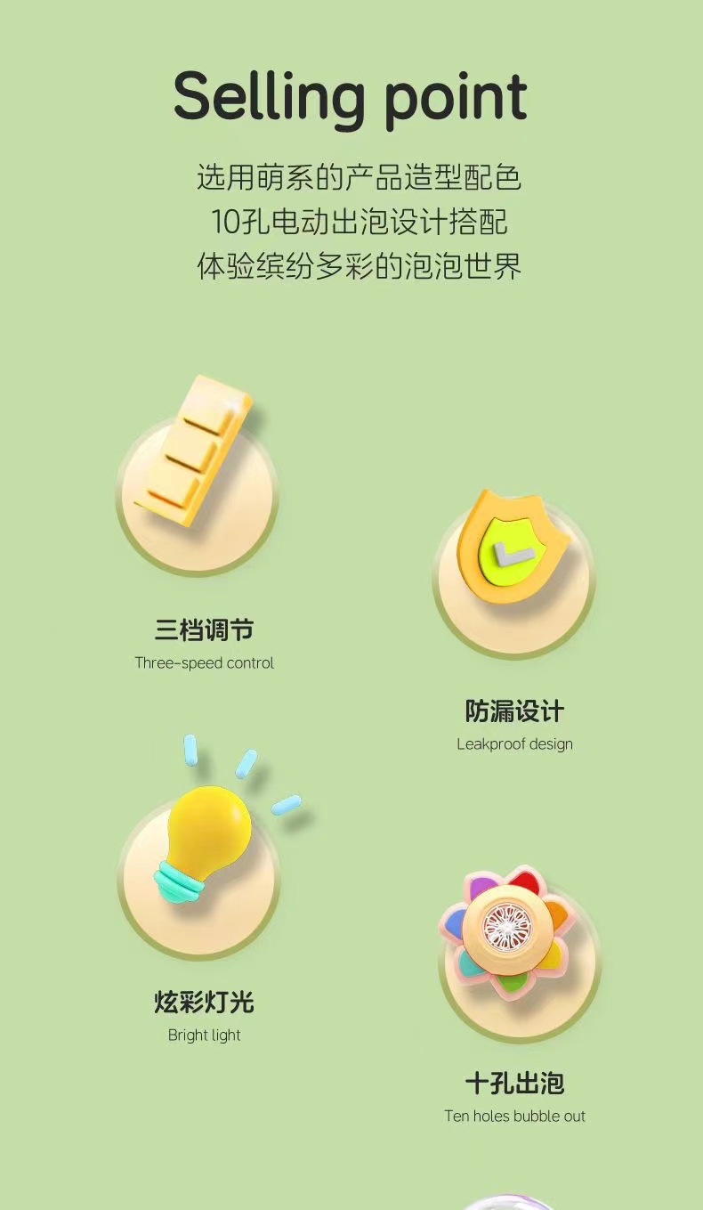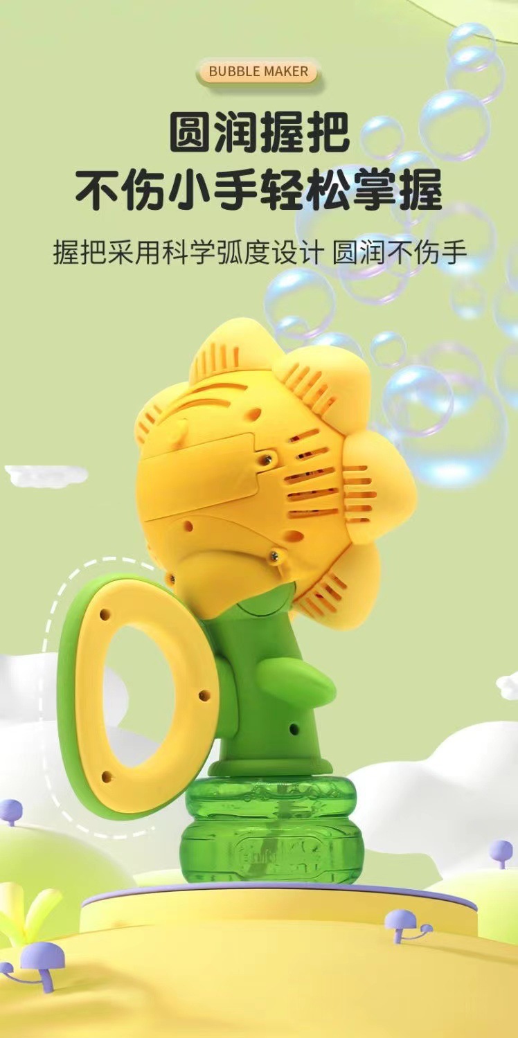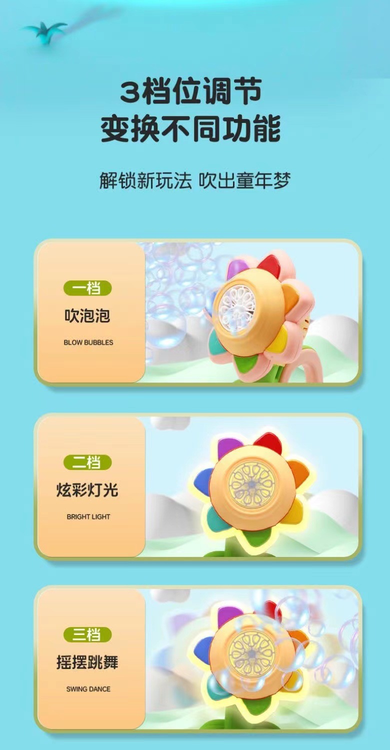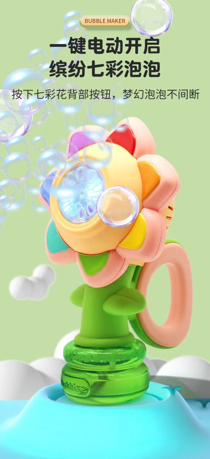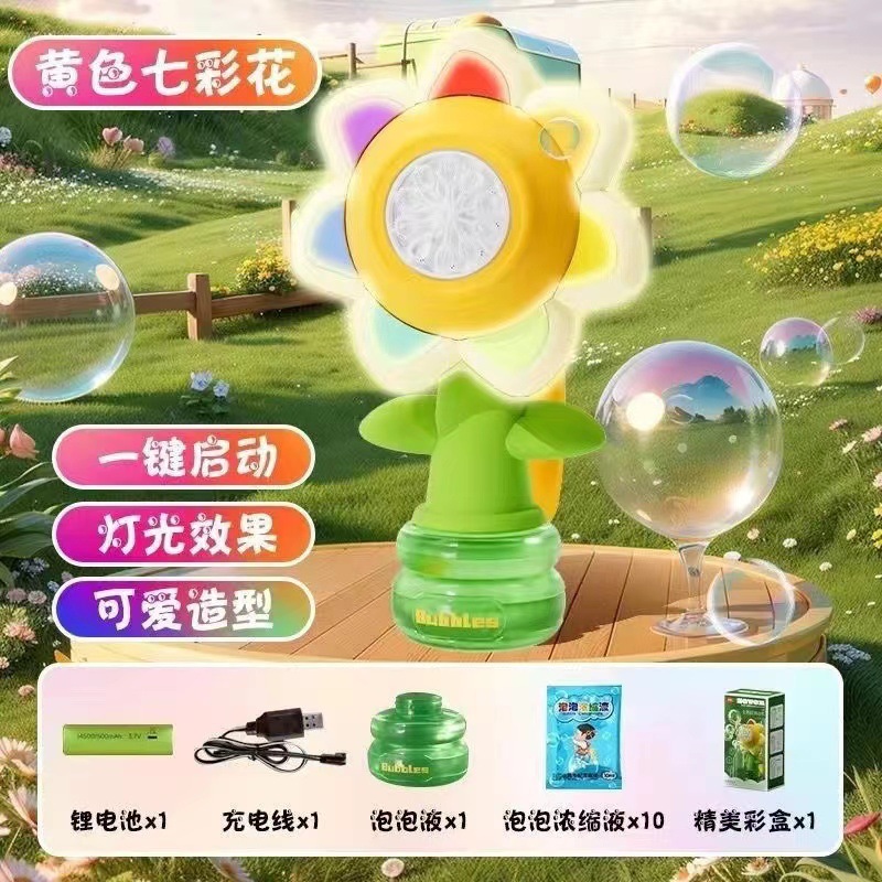 跨境新品全自动会摇头向日葵泡泡机炫彩可调节太阳花电动泡泡玩具