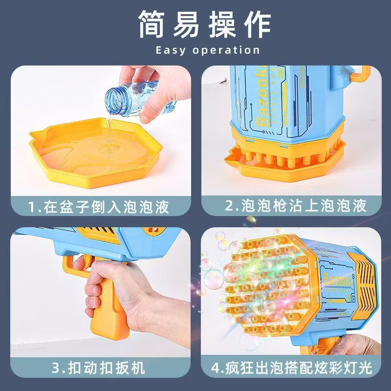 玩具泡泡机儿童69孔手持泡泡枪音效灯光小钢炮火箭筒加特林户外