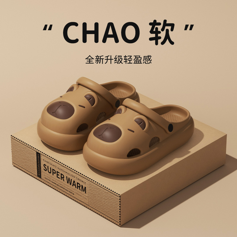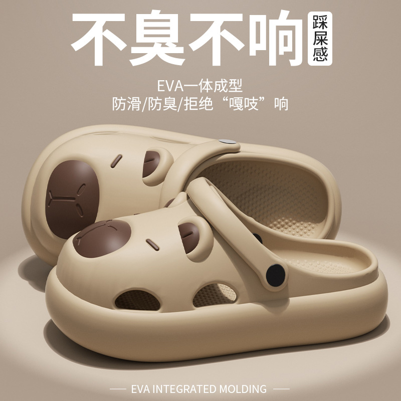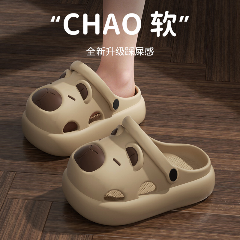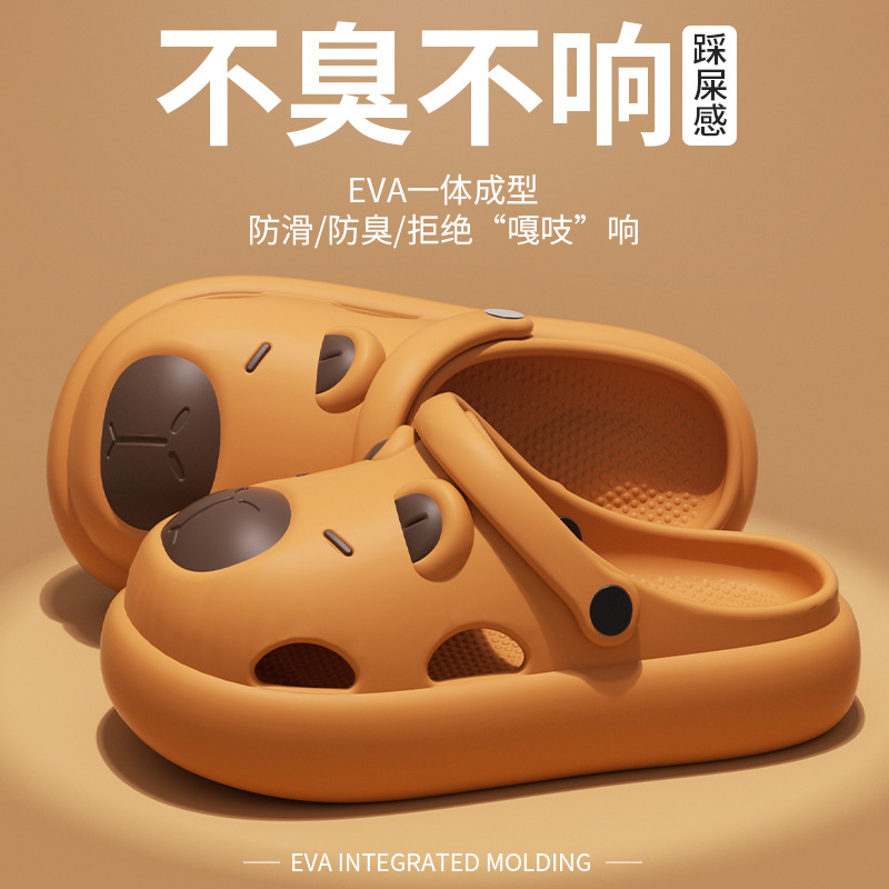 夏季新款卡皮巴拉洞洞鞋eva拖鞋女外穿踩屎感休闲家居防滑凉拖