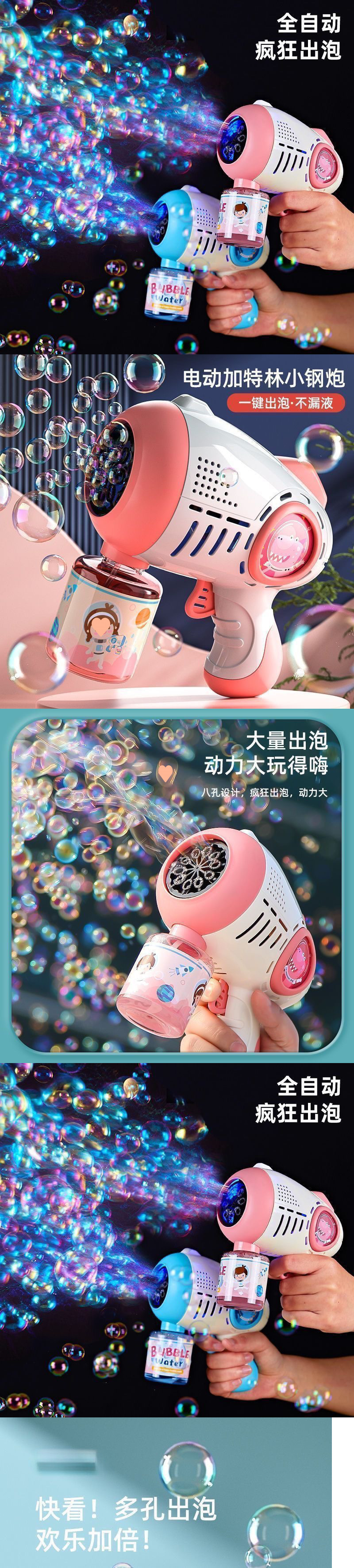 多孔泡泡机网红爆款儿童玩具灯光新款泡泡机爆款泡泡枪充电式电动