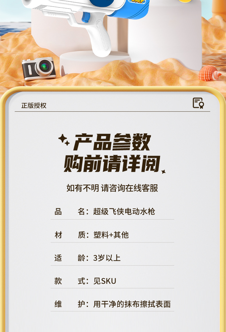正版授权超级飞侠夏季自动连发水枪大容量儿童打水仗电动水枪玩具