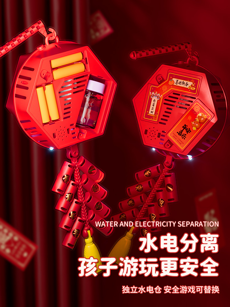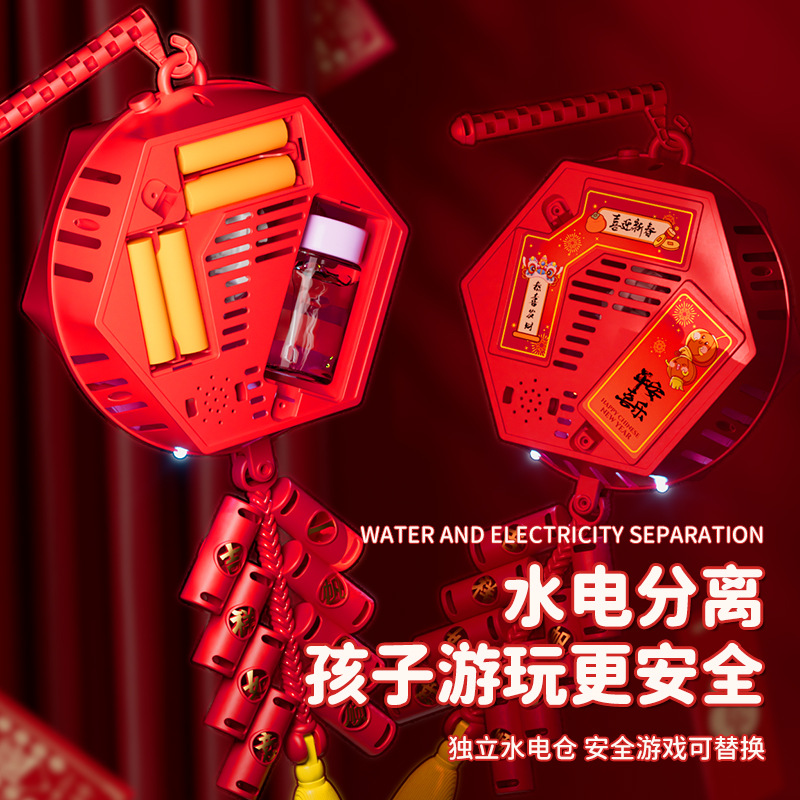 新年春节烟花电动发光鞭炮20孔音乐手持泡泡机景区地摊跨年玩具