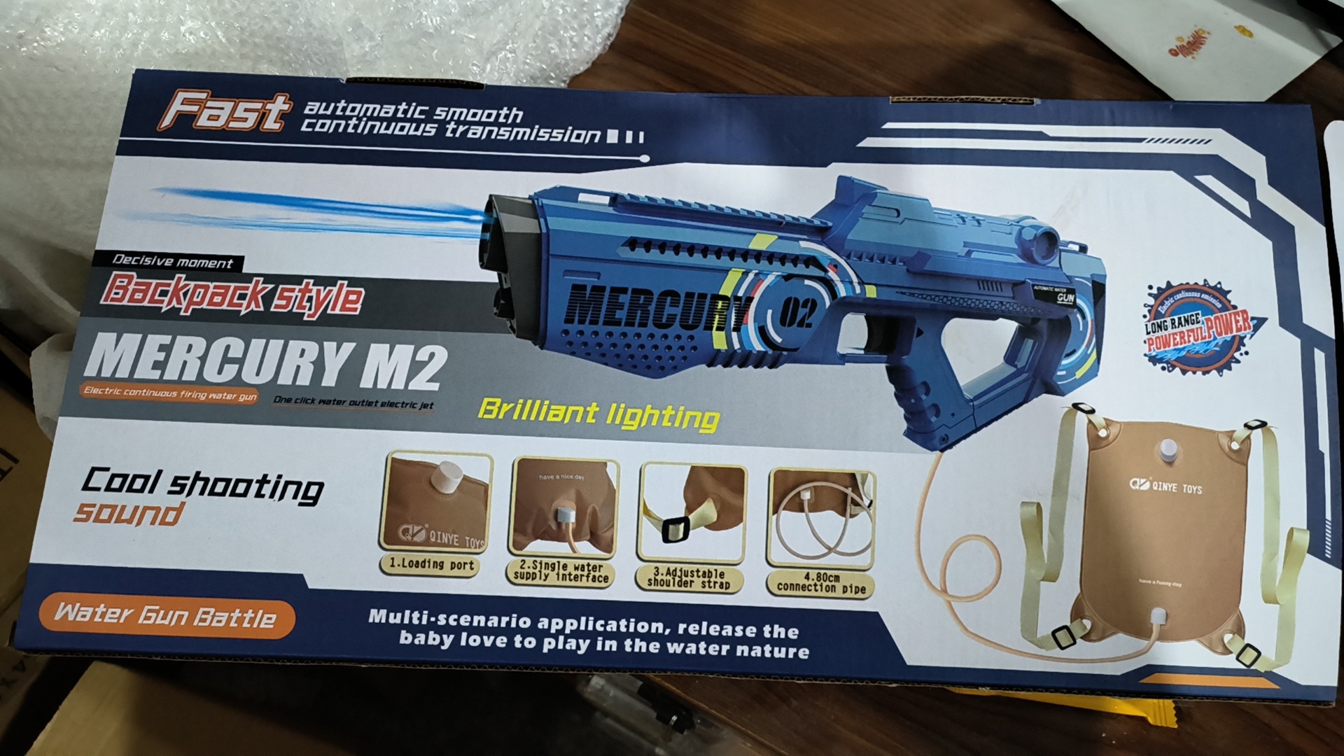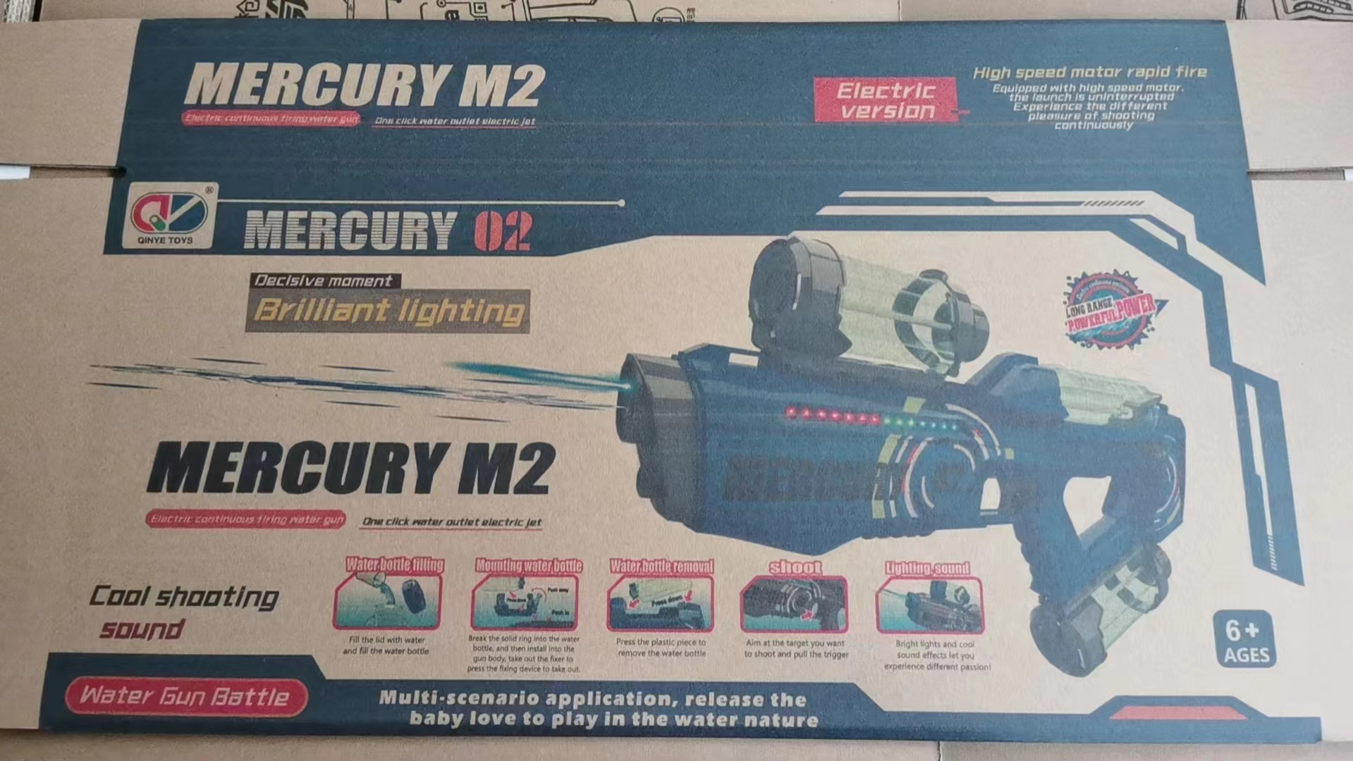 跨境水星M2电动连发水枪儿童礼物呲水枪戏水枪批发亲子互动亚马逊