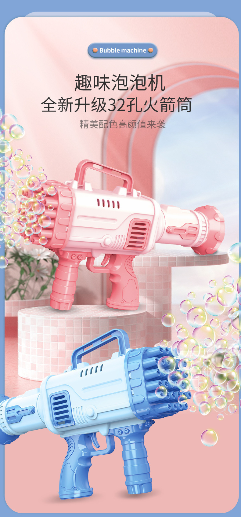 永元亨32孔火箭筒泡泡机儿童全自动吹泡泡玩具电动泡泡枪玩具批发