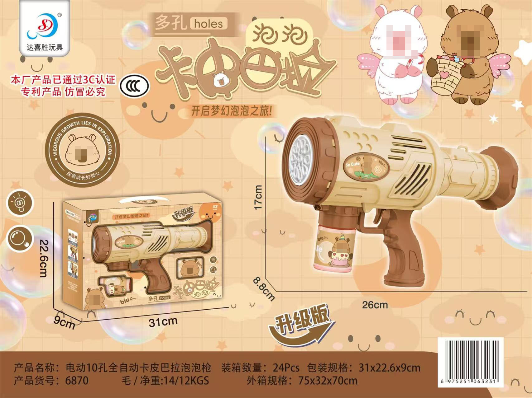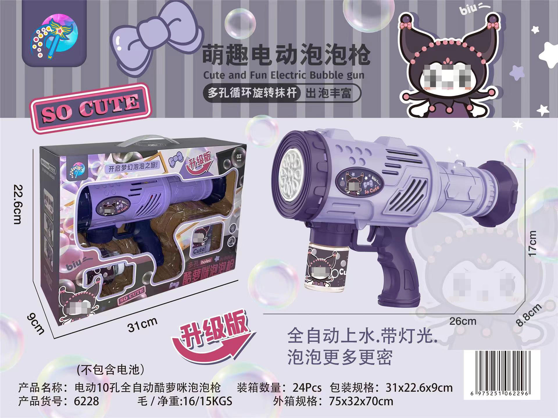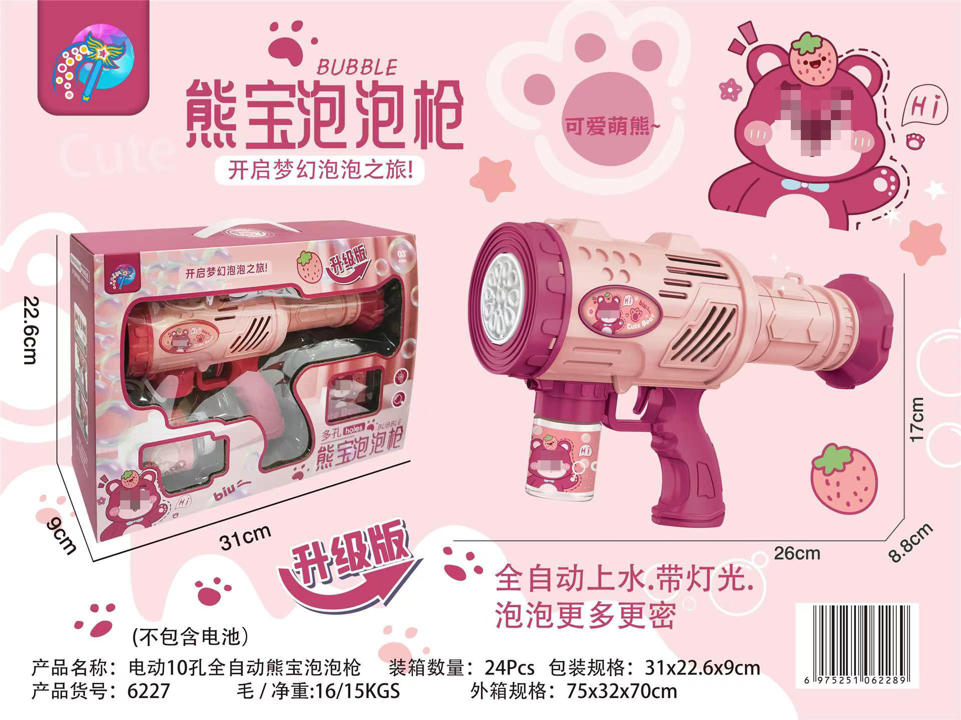 网红10孔电动泡泡机火箭筒全自动灯光泡泡枪玩具培训机构礼品批发