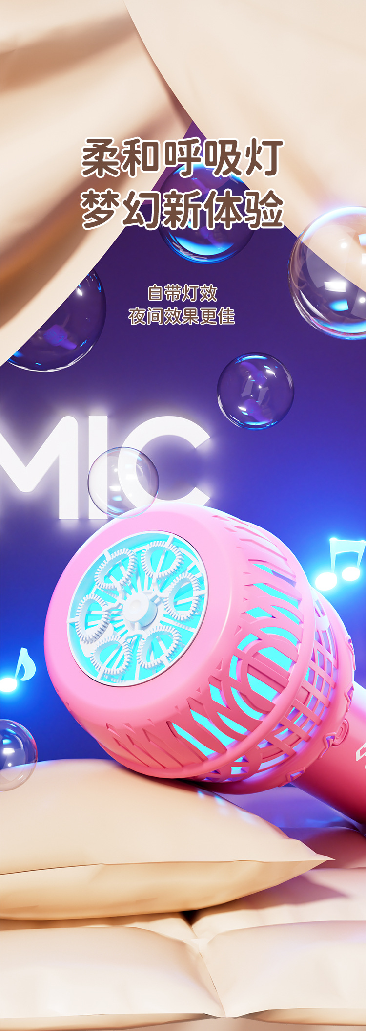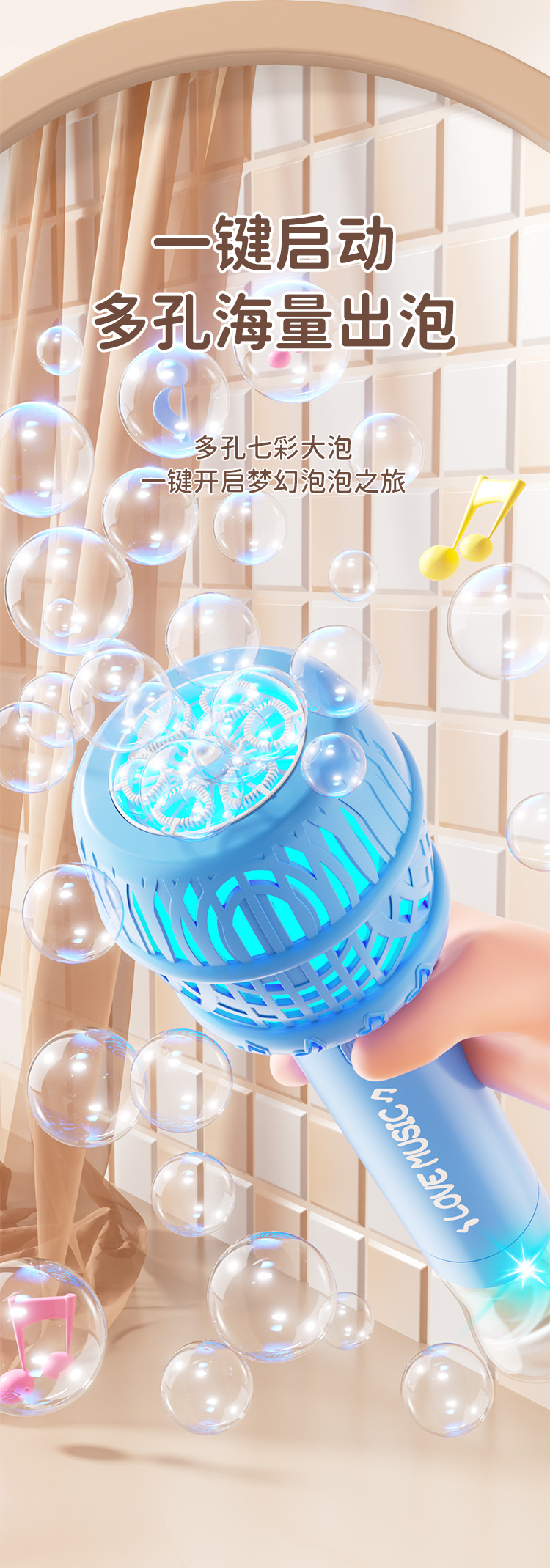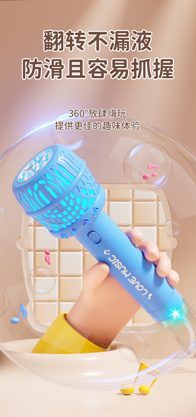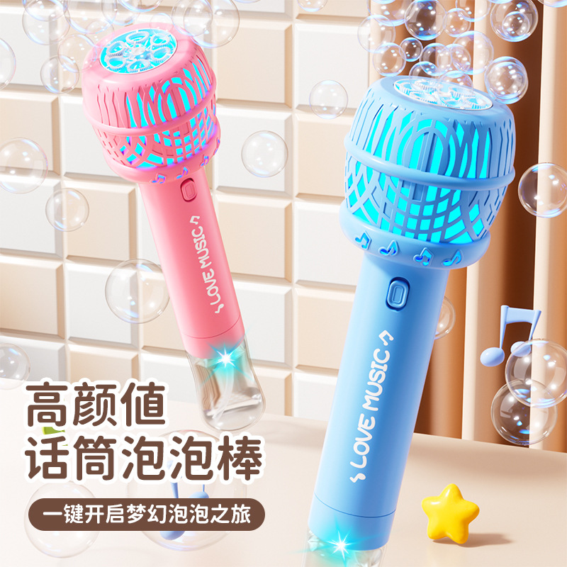 2025年新款话筒泡泡棒儿童泡泡机全自动手持不漏泡泡机灯光泡泡枪