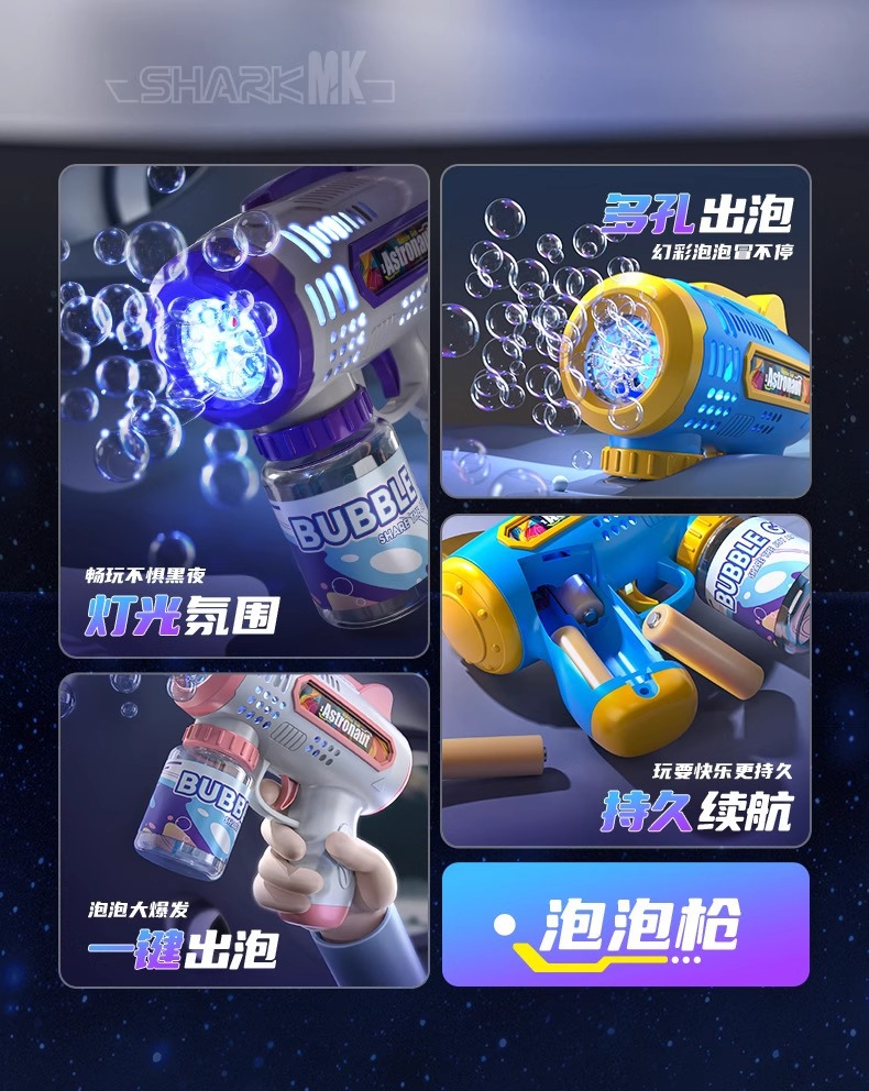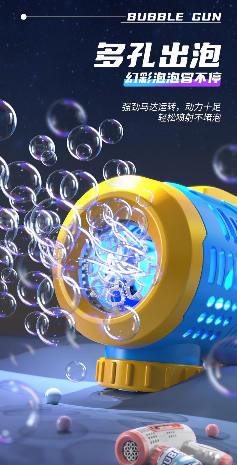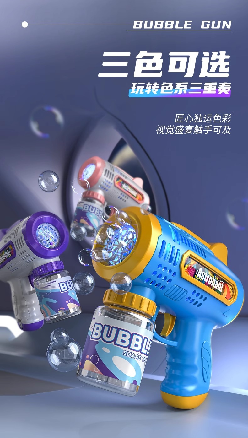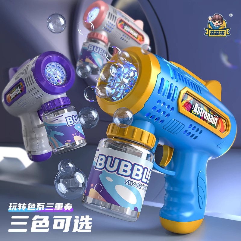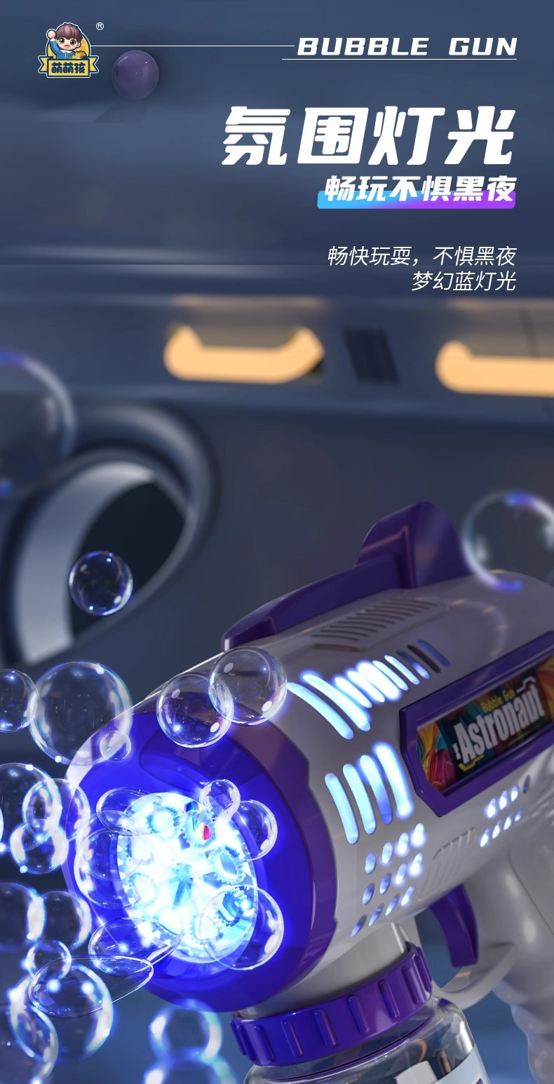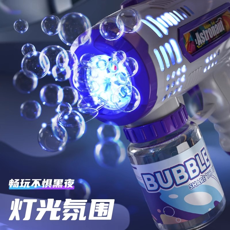 亚马逊跨境爆款儿童8孔全自动灯光手持泡泡枪儿童户外玩具加特林
