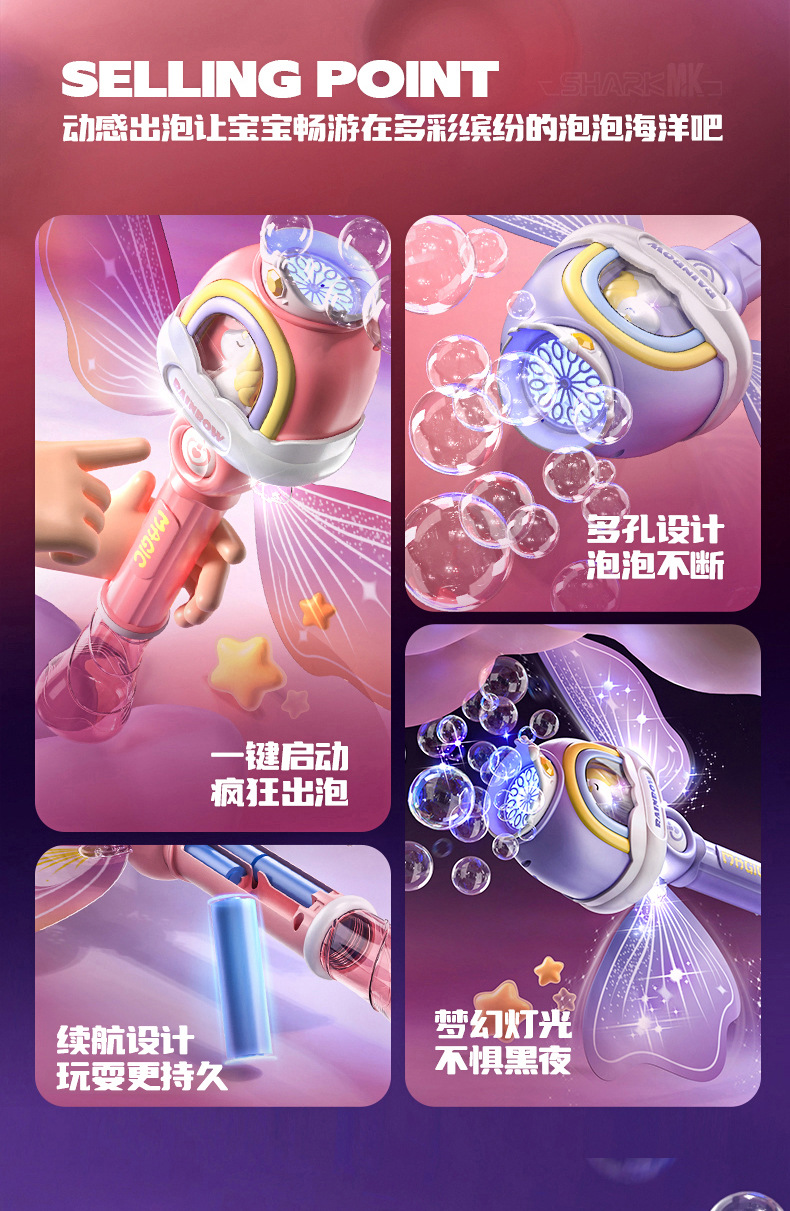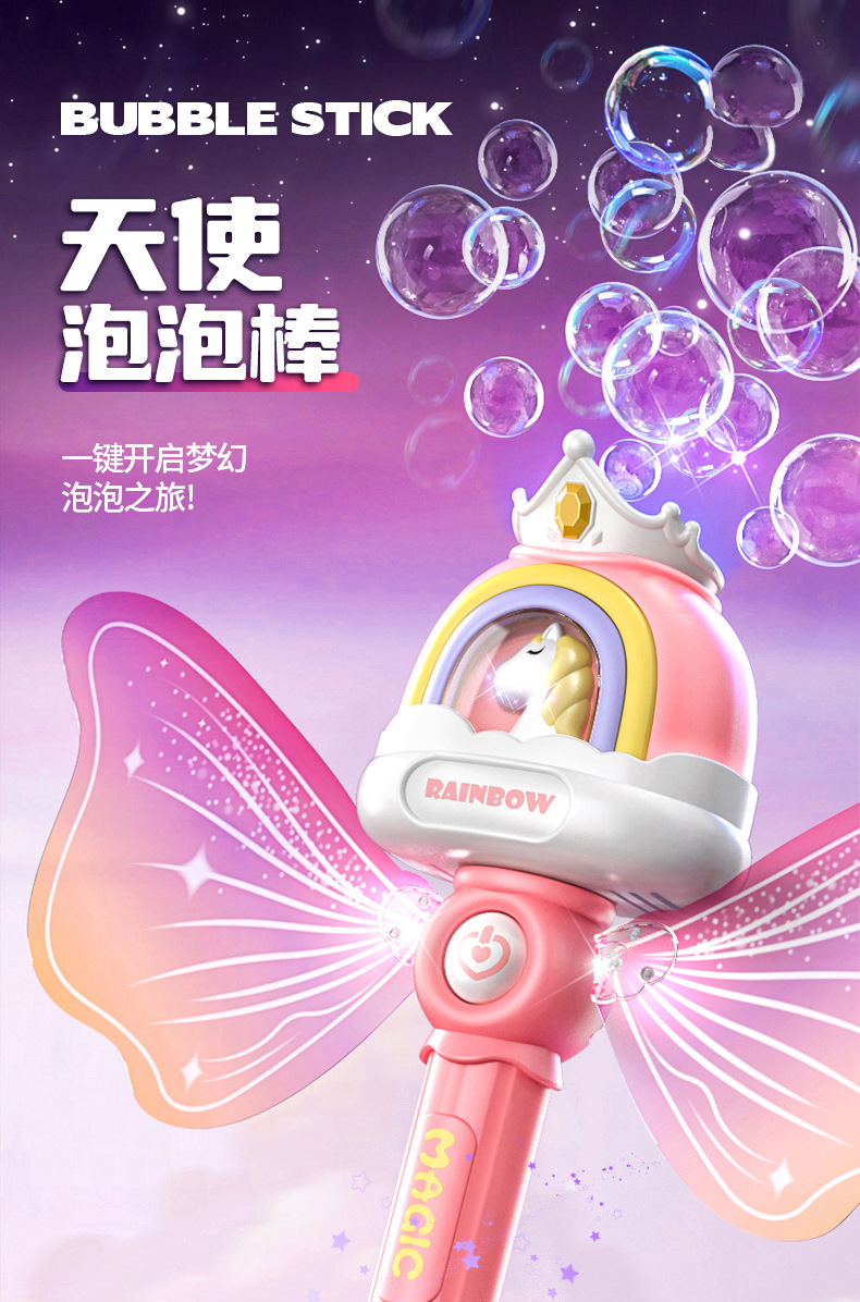 新品全自动天使泡泡机女孩手持独角兽泡泡枪灯光网红儿童女孩玩具