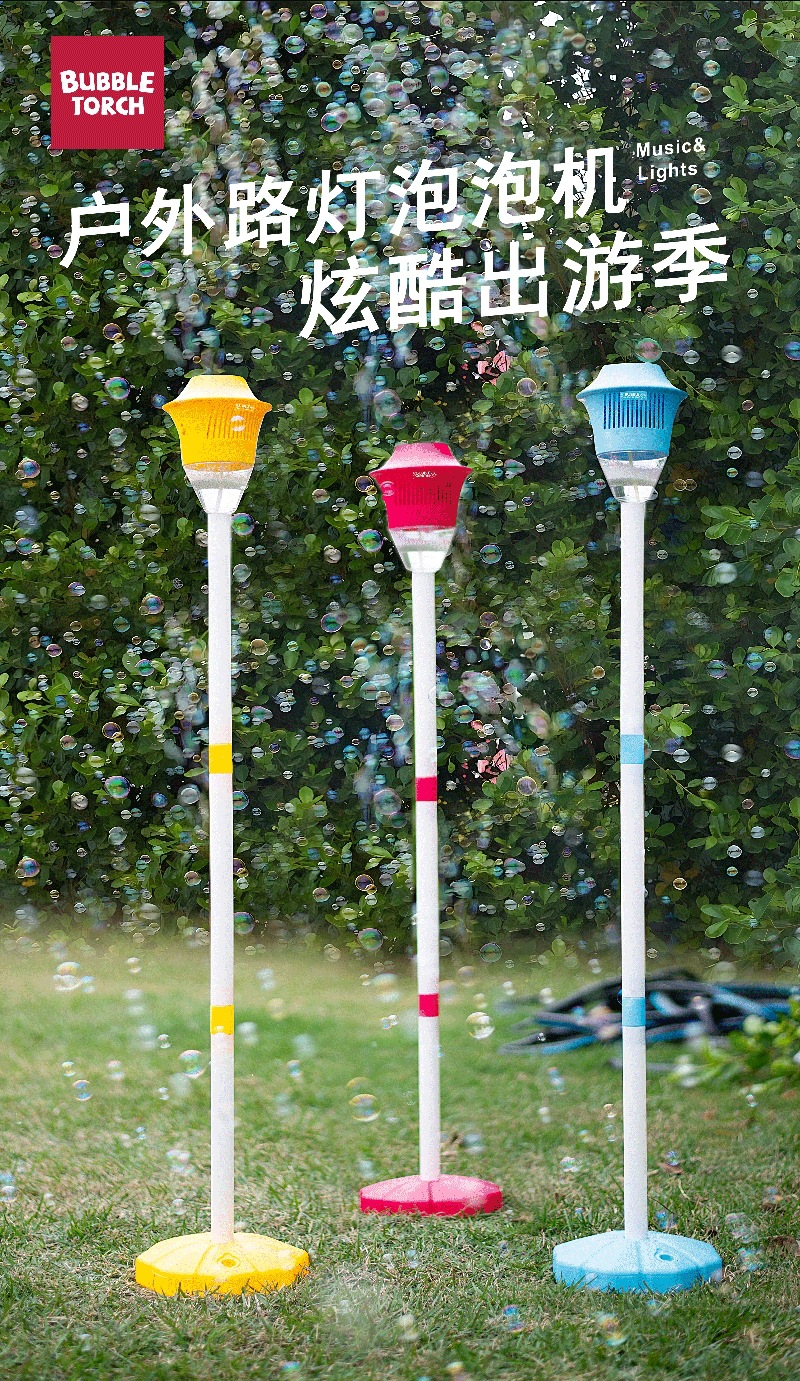 跨境新款路灯泡泡机 音乐灯光全自动吹泡泡儿童玩具户外婚庆聚餐