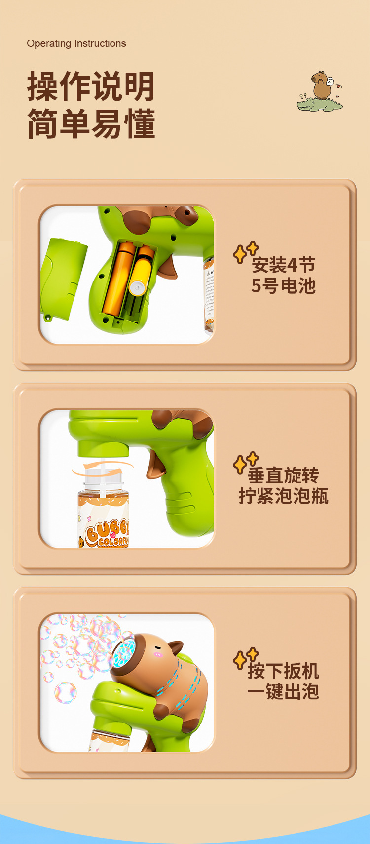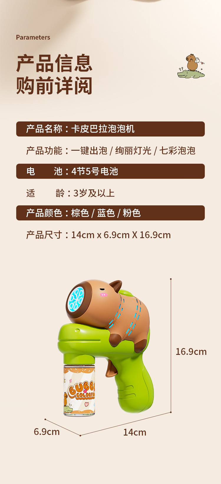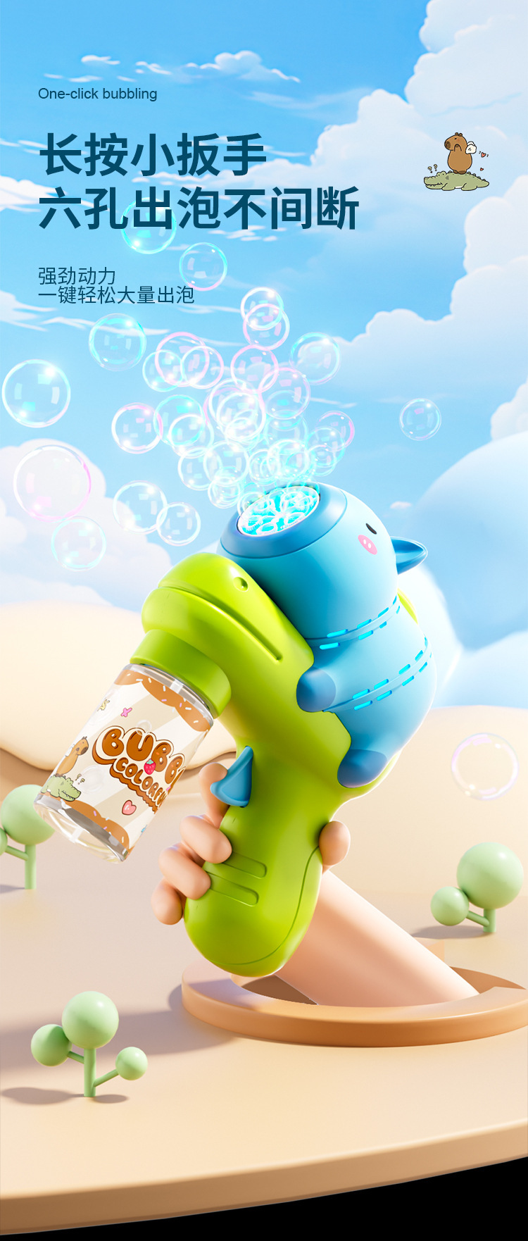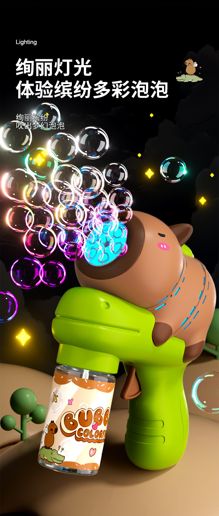 新客卡皮巴拉泡泡机玩具儿童全自动灯光泡泡棒加特林独角兽泡泡枪