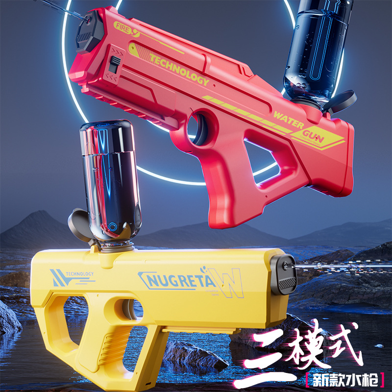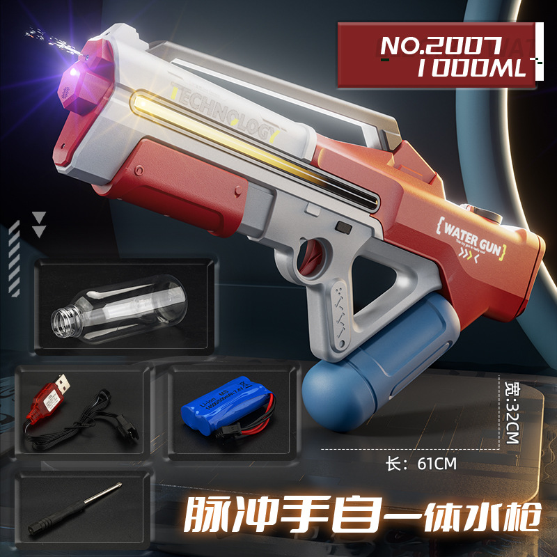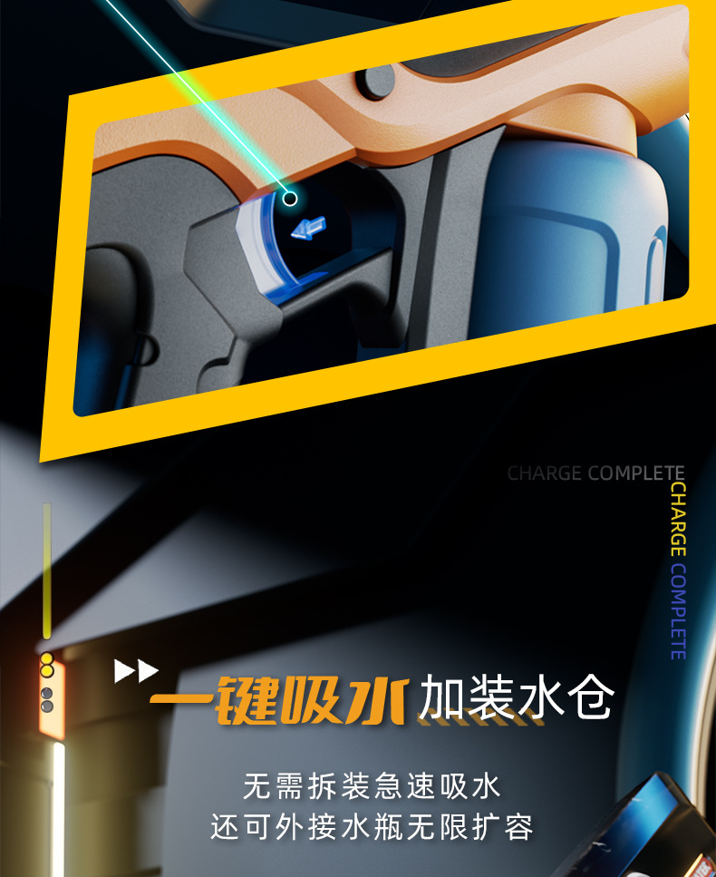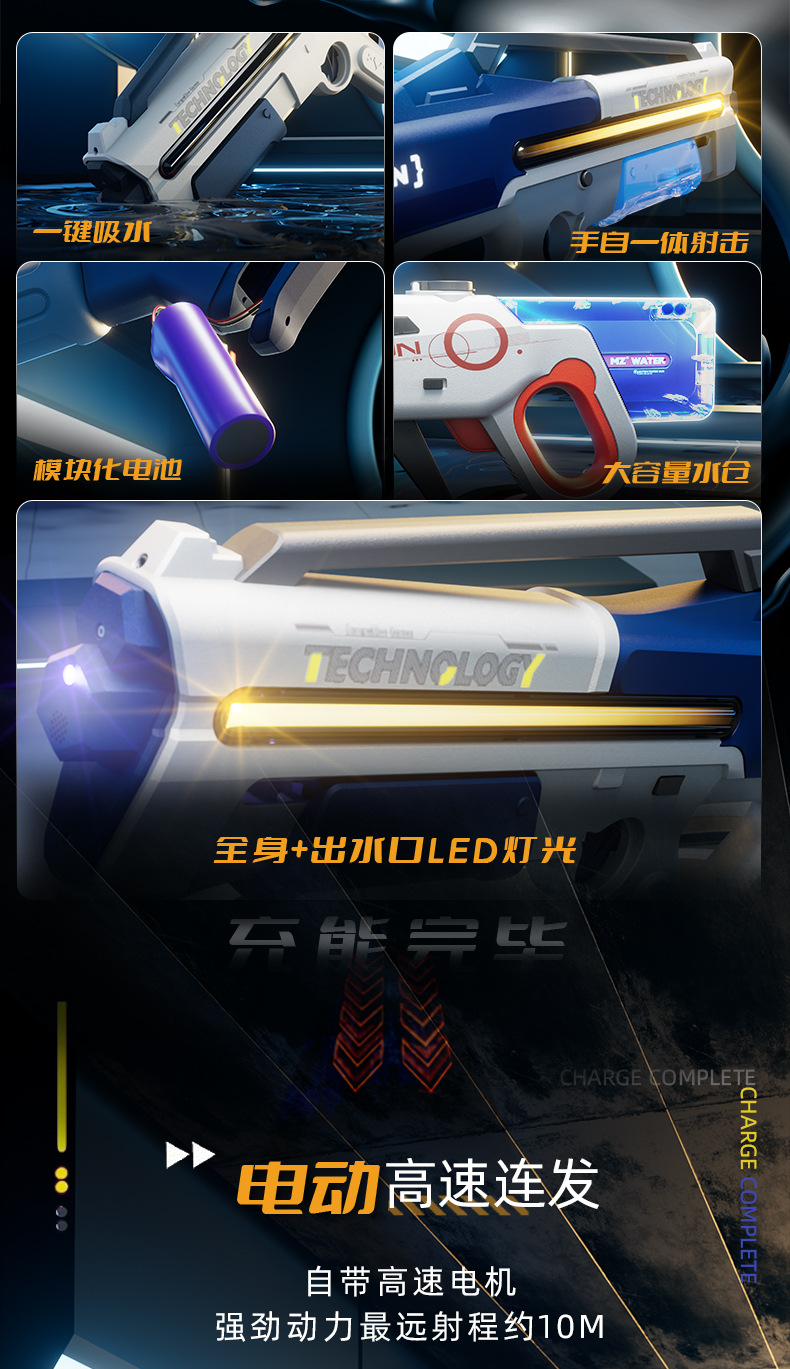 跨境新款电动水枪大容量自动吸水 带跑马灯手自一体背包水枪玩具