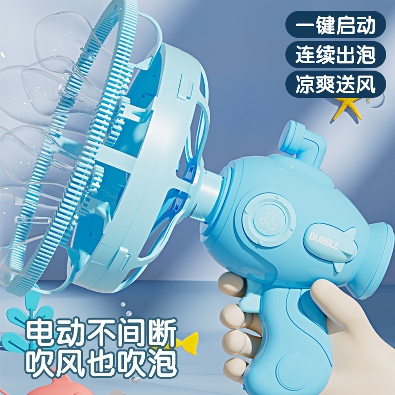 新款网红泡泡机玩具儿童风扇泡泡枪手按电动吹泡中泡地摊公园批发