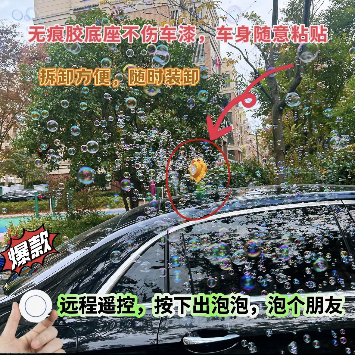 2025新款摇头晃脑七色太阳花向日葵泡泡机遥控汽车尾部车载泡泡机