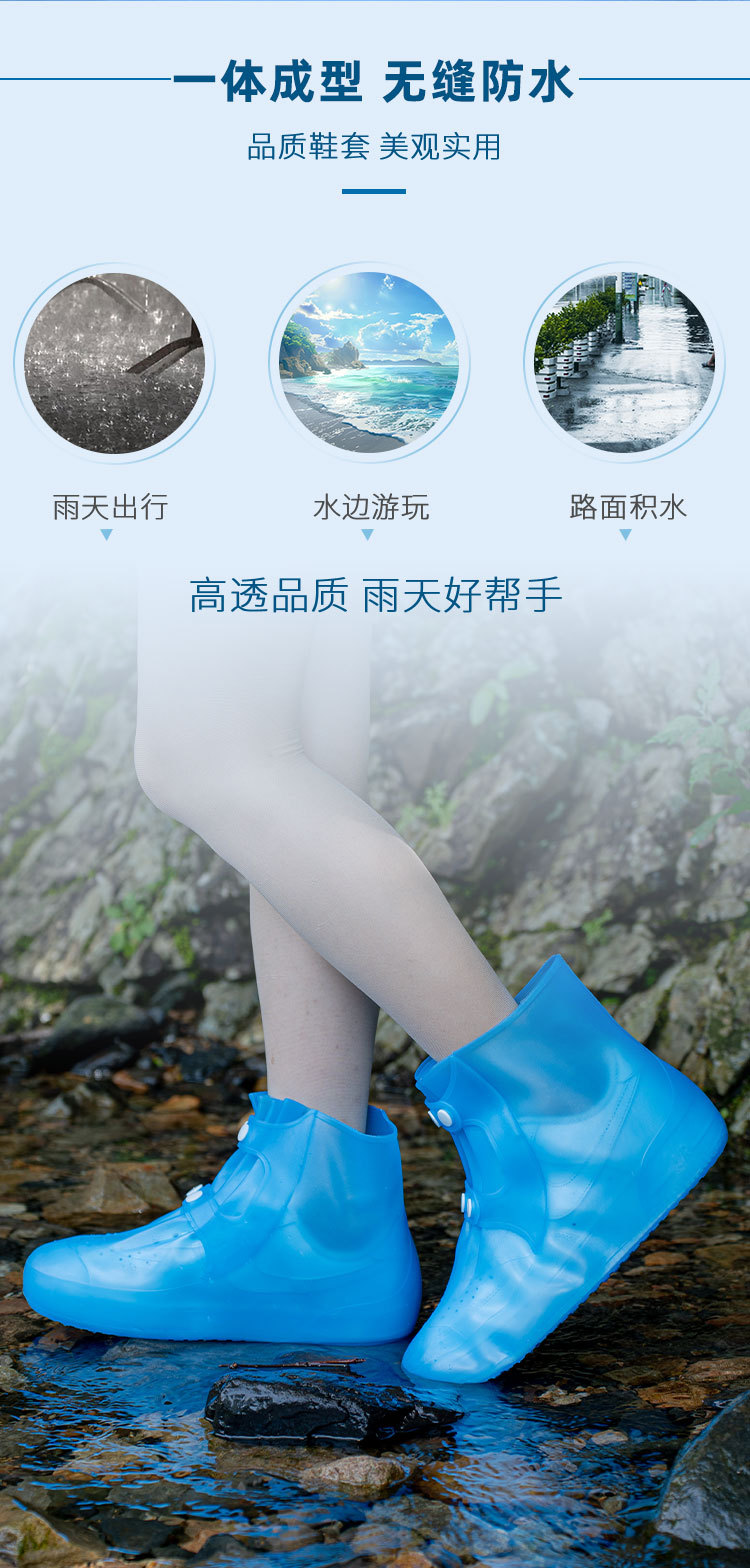 防水PVC鞋套加厚防滑耐磨户外男女雨靴硅胶便携便携式成人雨鞋