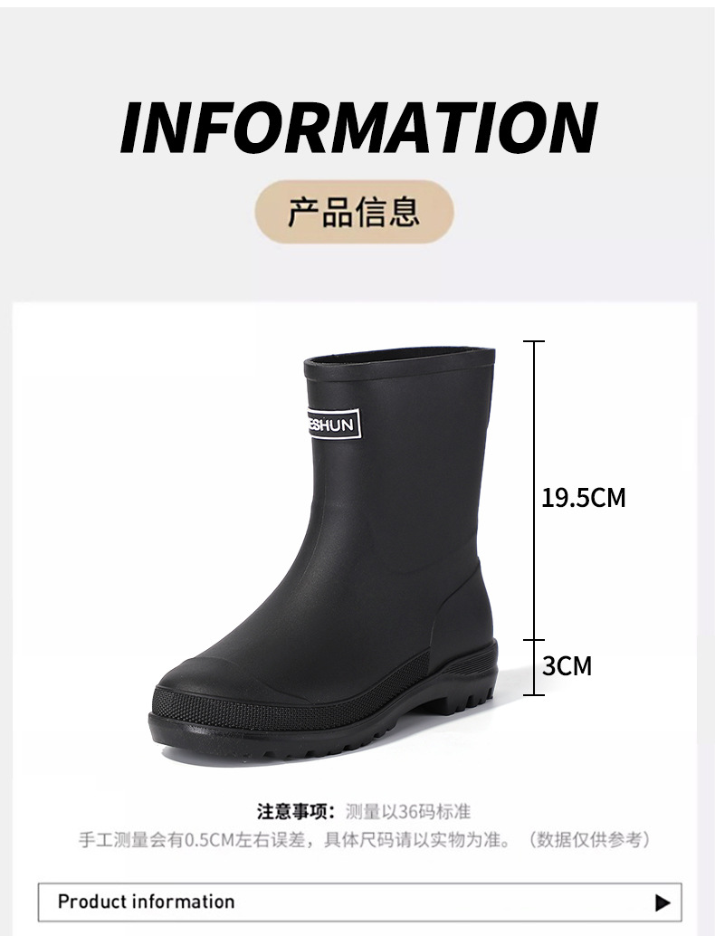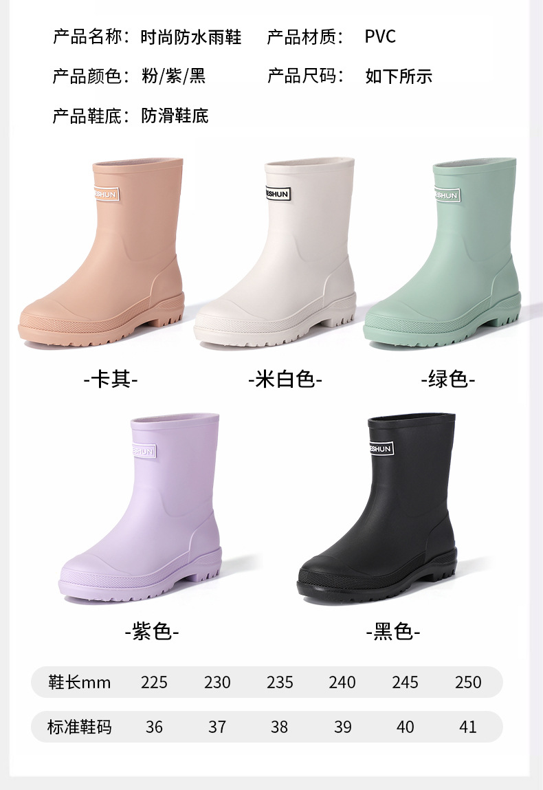韩版日系时尚雨鞋女士纯色简约短筒雨靴防水防滑外穿厨房工作水鞋