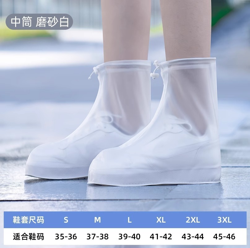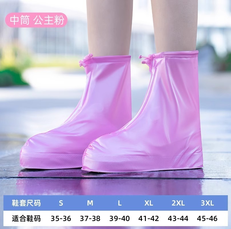 防水鞋套拉链款加厚雨鞋套PVC鞋套中筒旅行防滑耐磨防雨鞋套批发