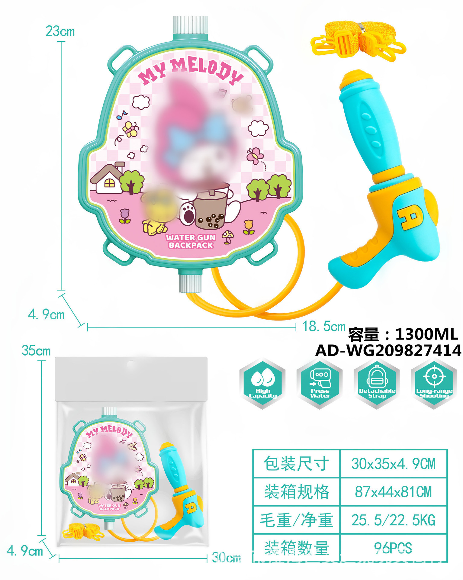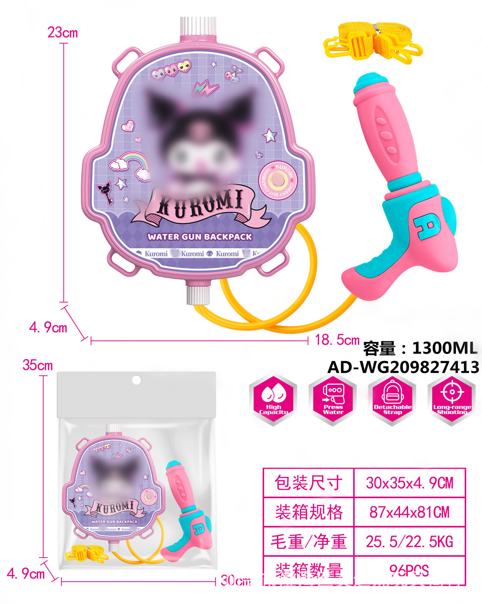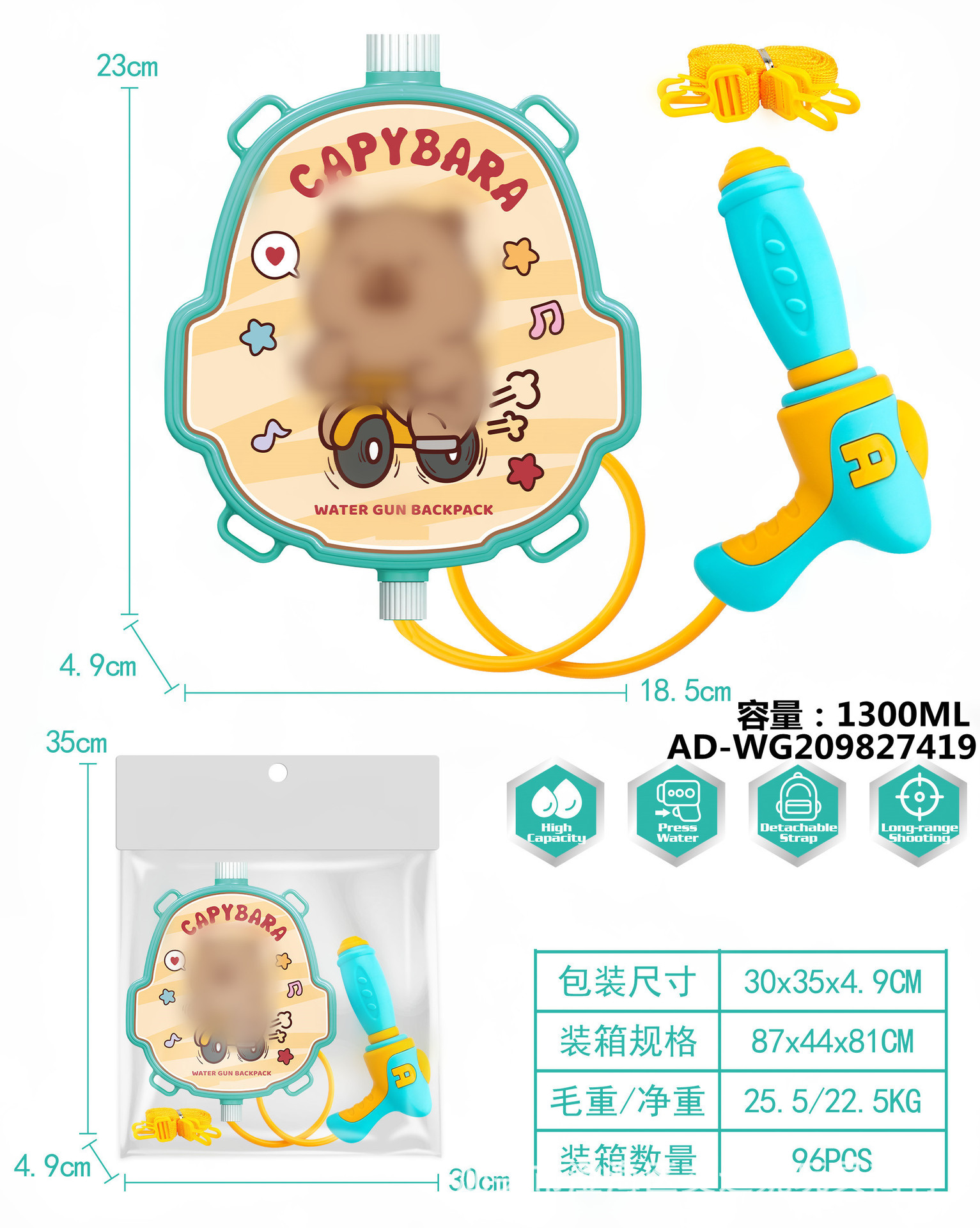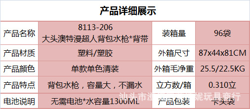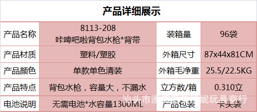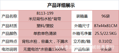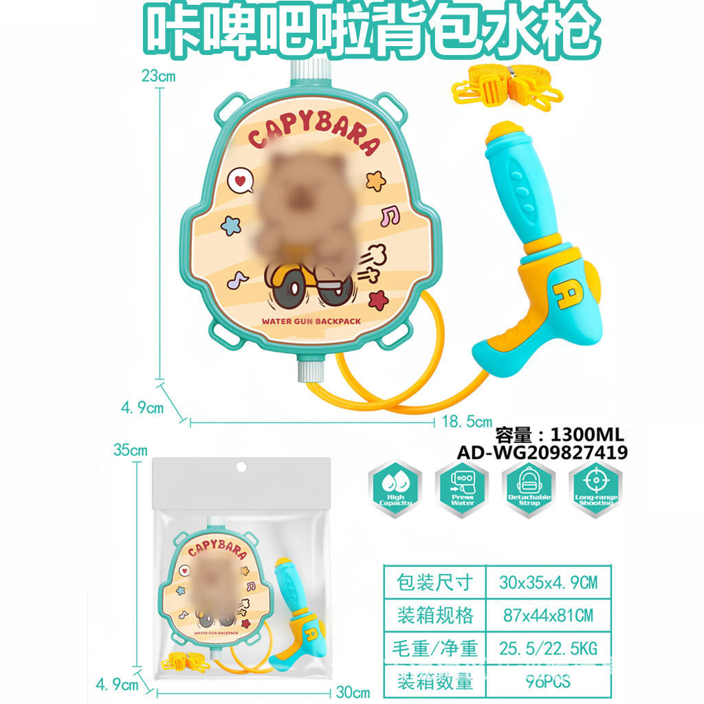 夏季儿童啦咘咘背包抽拉式水枪萌趣戏水旺旺队水枪沙滩游乐园玩具
