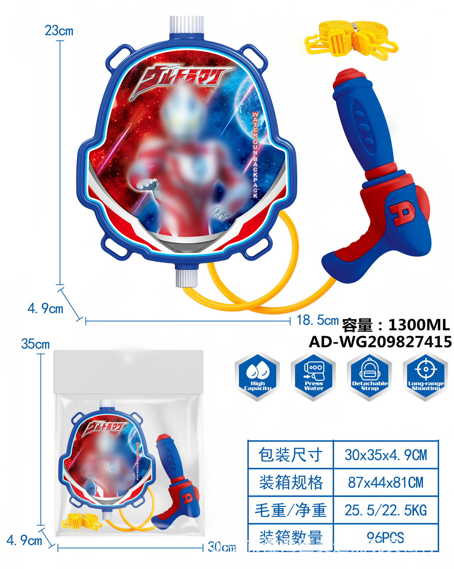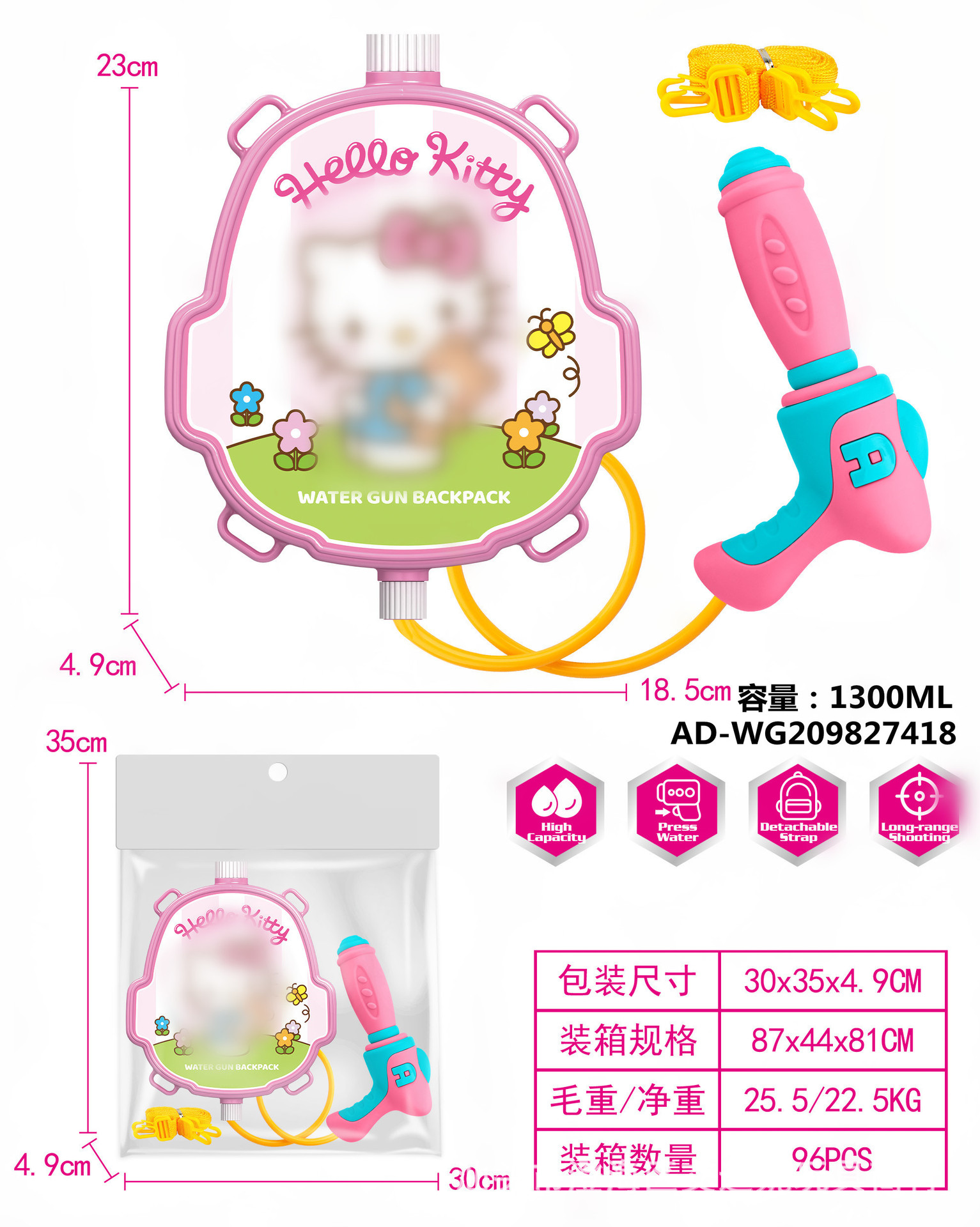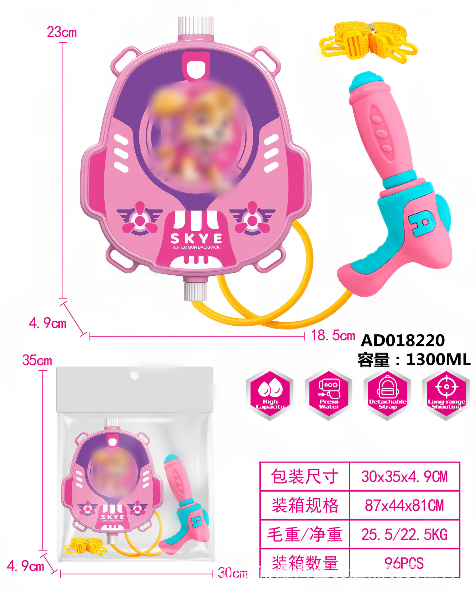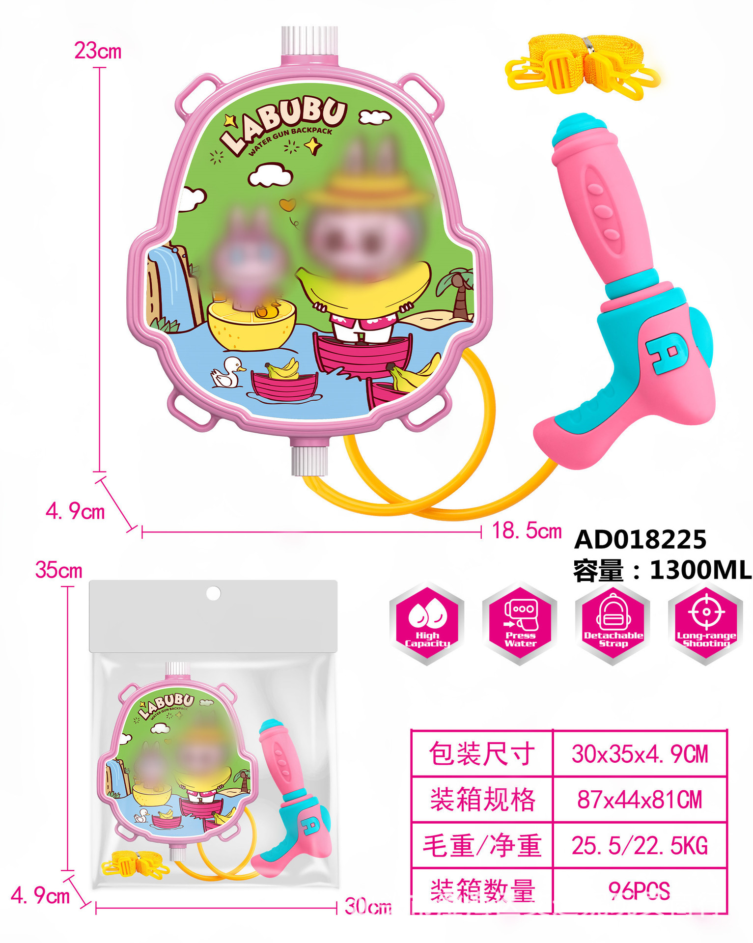 夏季儿童啦咘咘背包抽拉式水枪萌趣戏水旺旺队水枪沙滩游乐园玩具