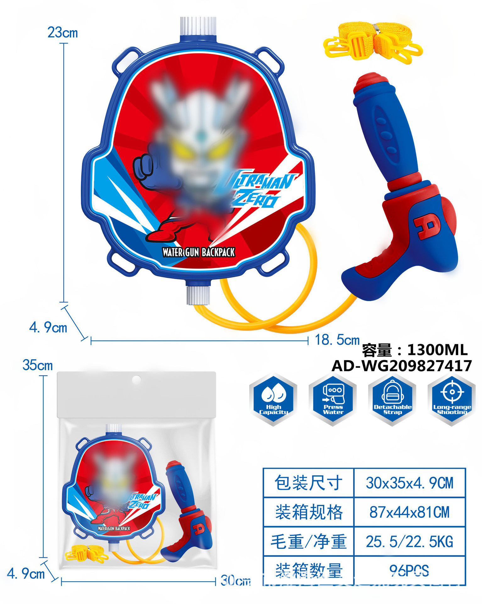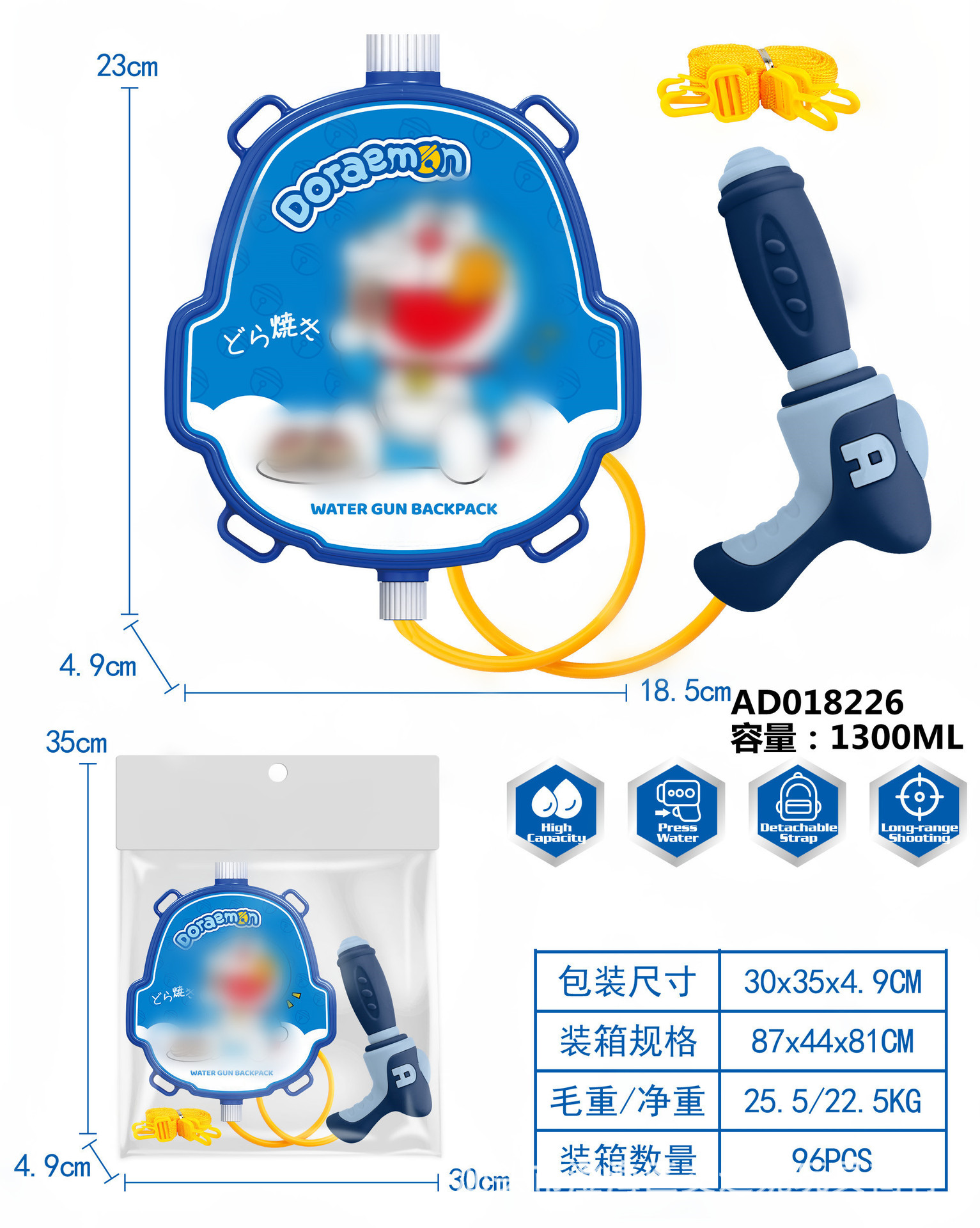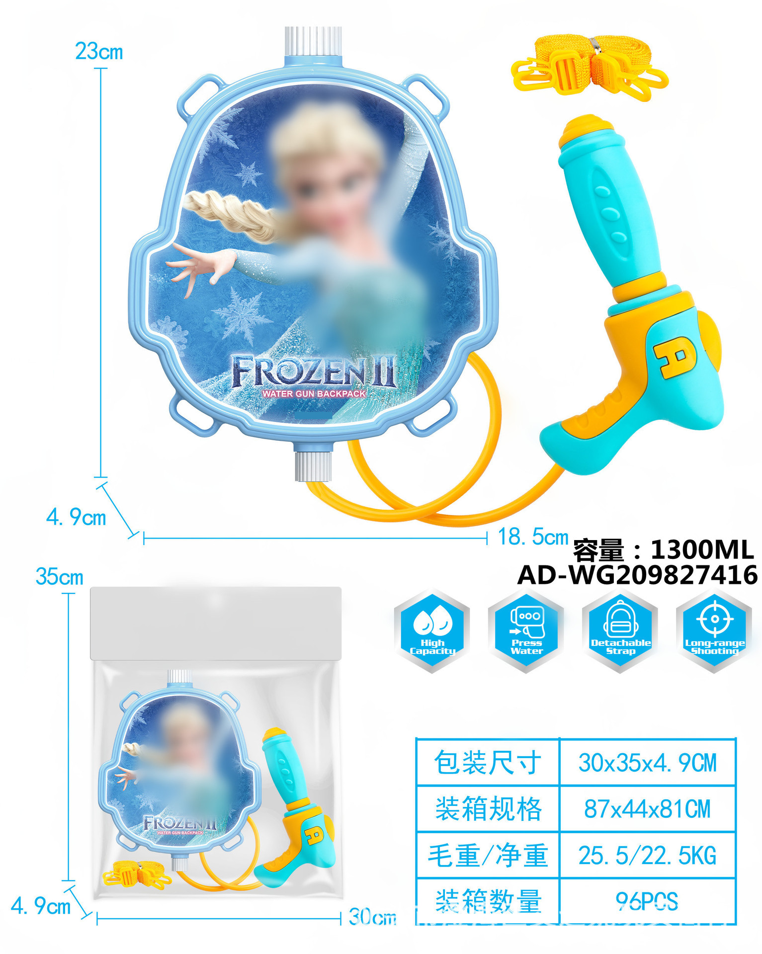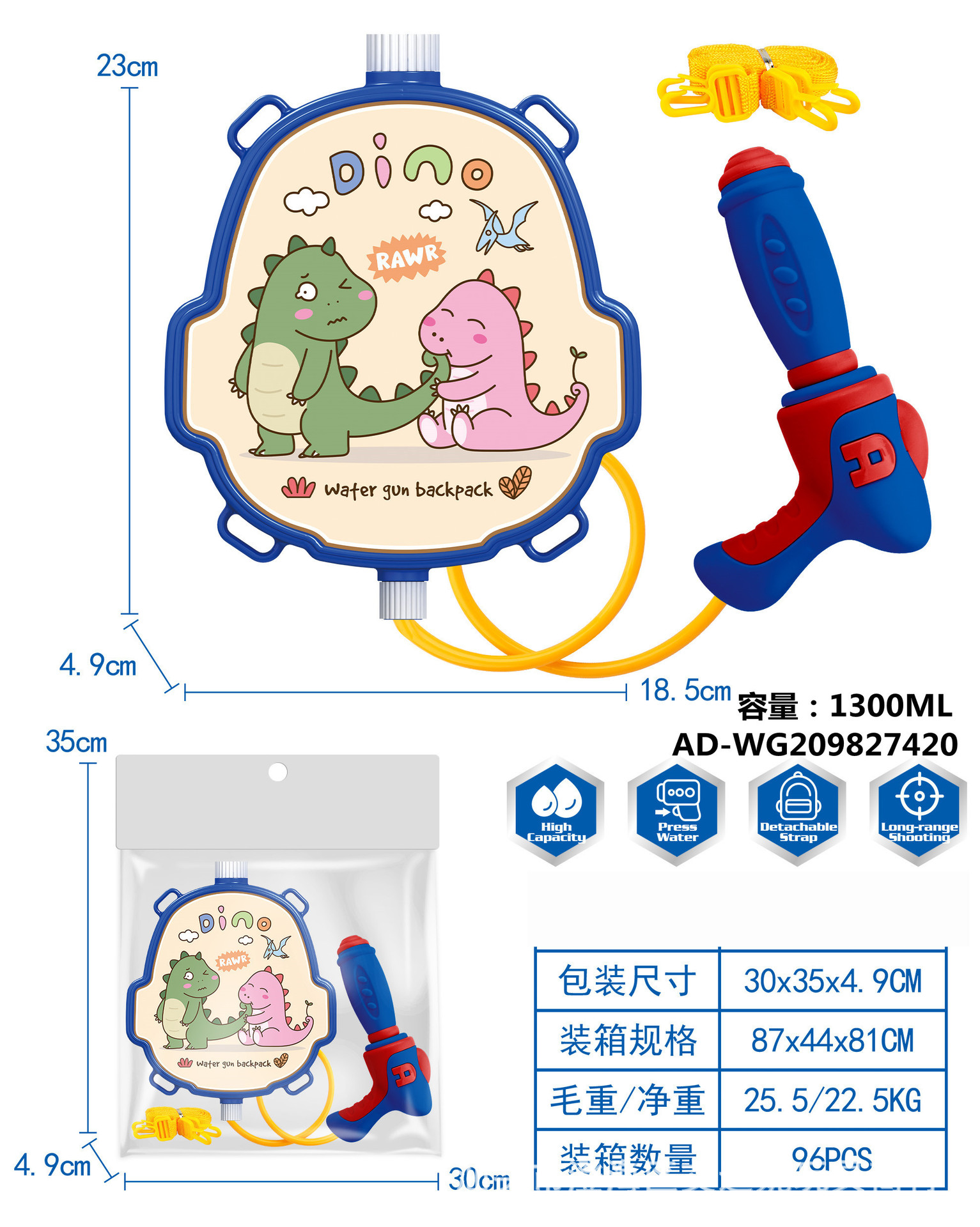 夏季儿童啦咘咘背包抽拉式水枪萌趣戏水旺旺队水枪沙滩游乐园玩具
