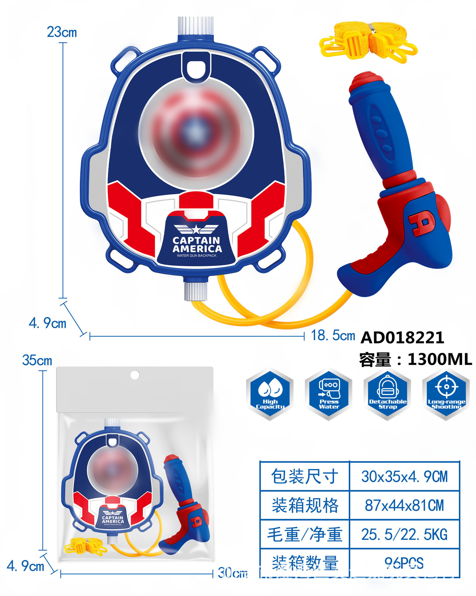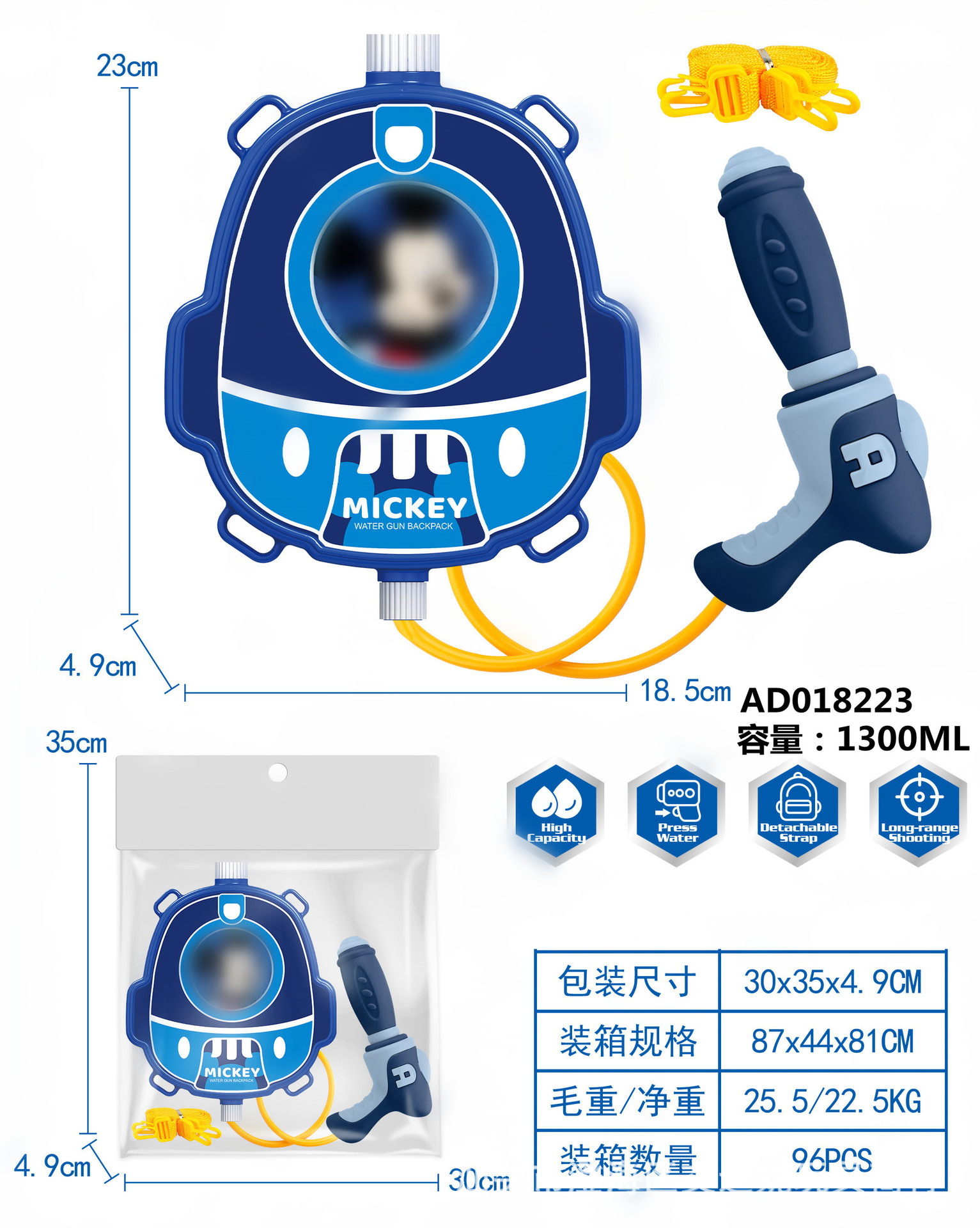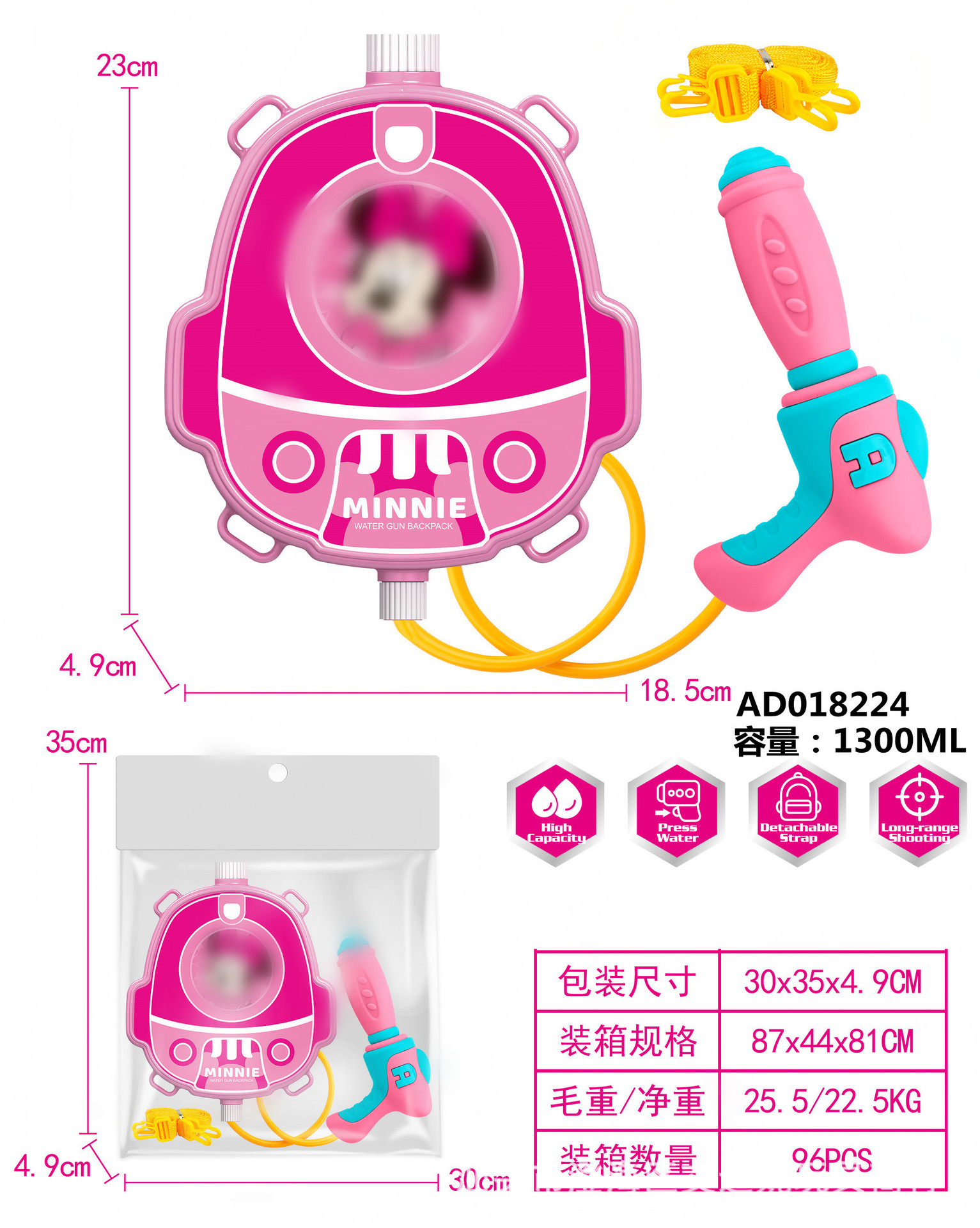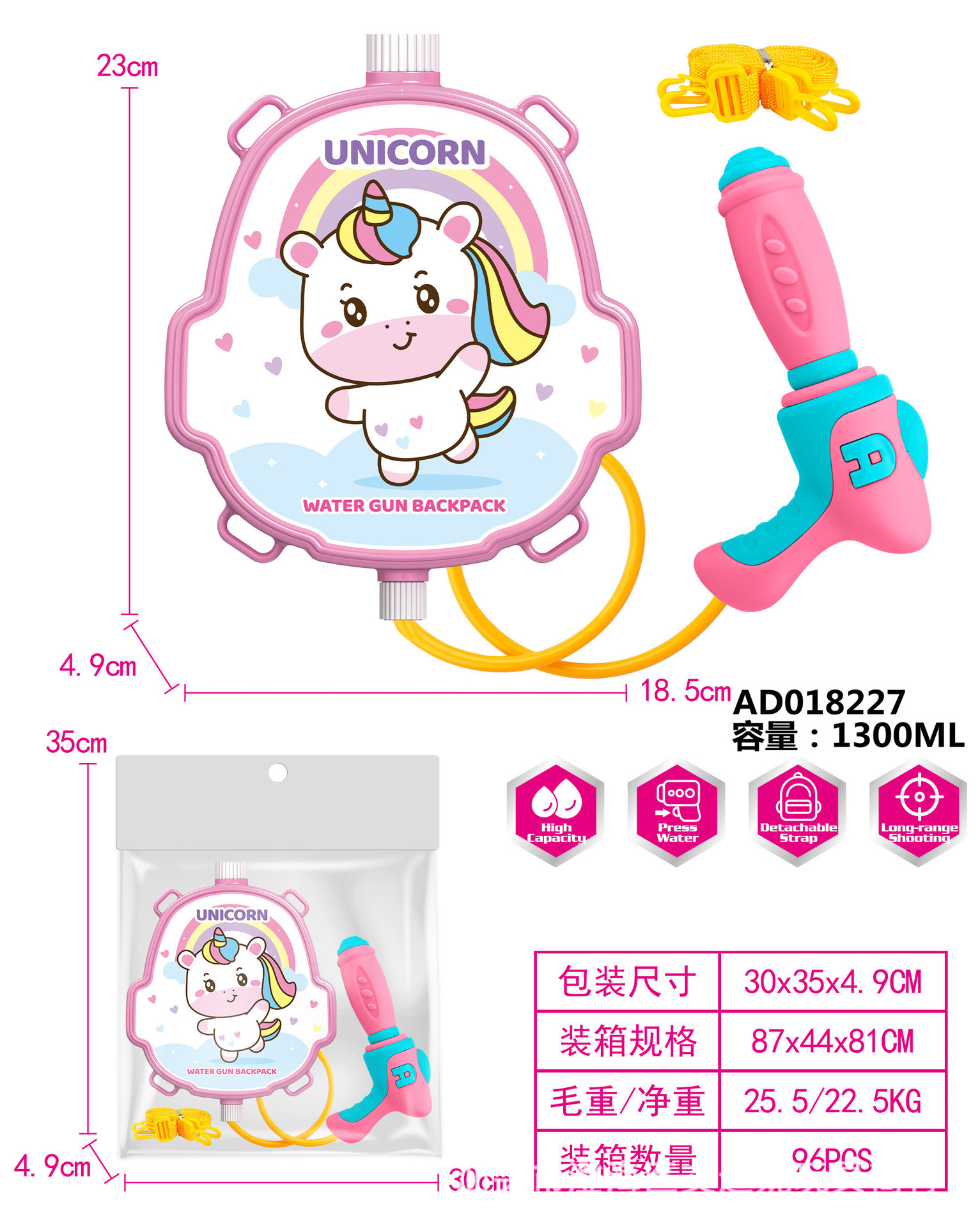 夏季儿童啦咘咘背包抽拉式水枪萌趣戏水旺旺队水枪沙滩游乐园玩具
