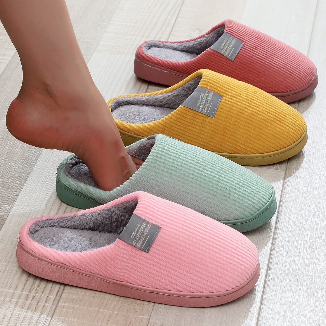 经典侧标灯芯绒棉拖鞋情侣款纯色家居室内拖鞋简约居家女拖鞋批发