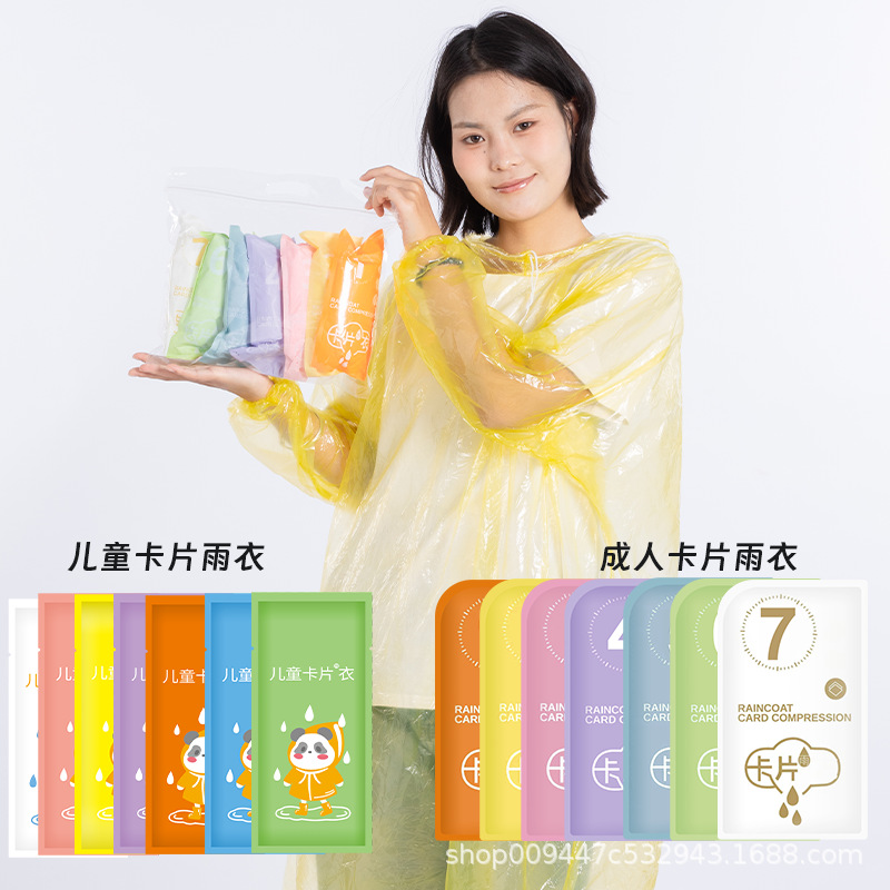 portable disposable card raincoat lengthened adult children‘s thickened travel waterproof one-piece poncho wholesale