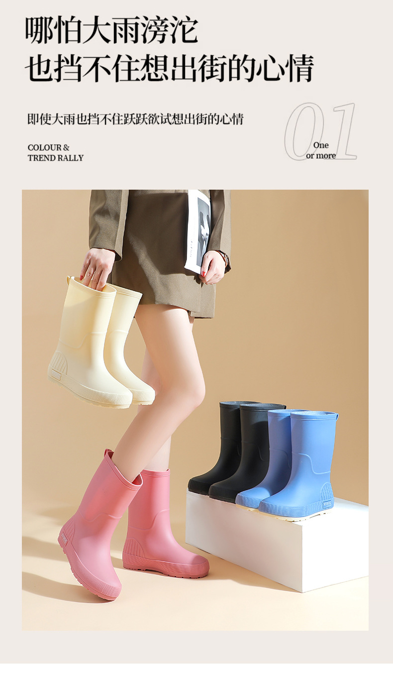 2025跨境时尚中筒女雨鞋防水防滑水鞋防雨胶鞋休闲百搭成人雨靴