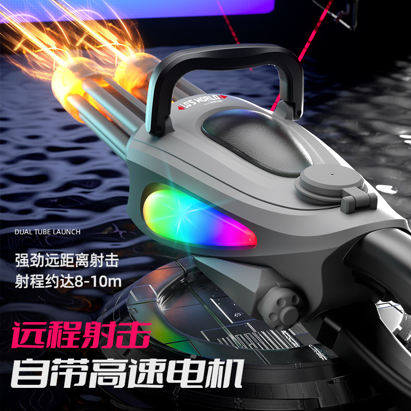跨境双管加特林水枪大容量射程远炫彩灯光高速连发电动脉冲水枪