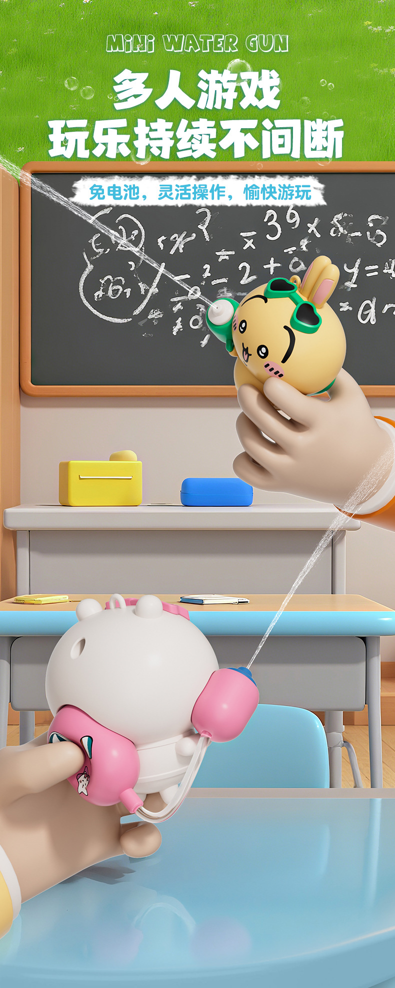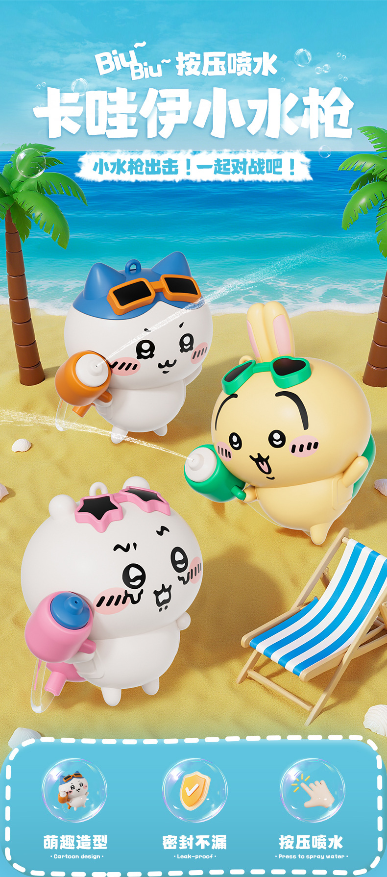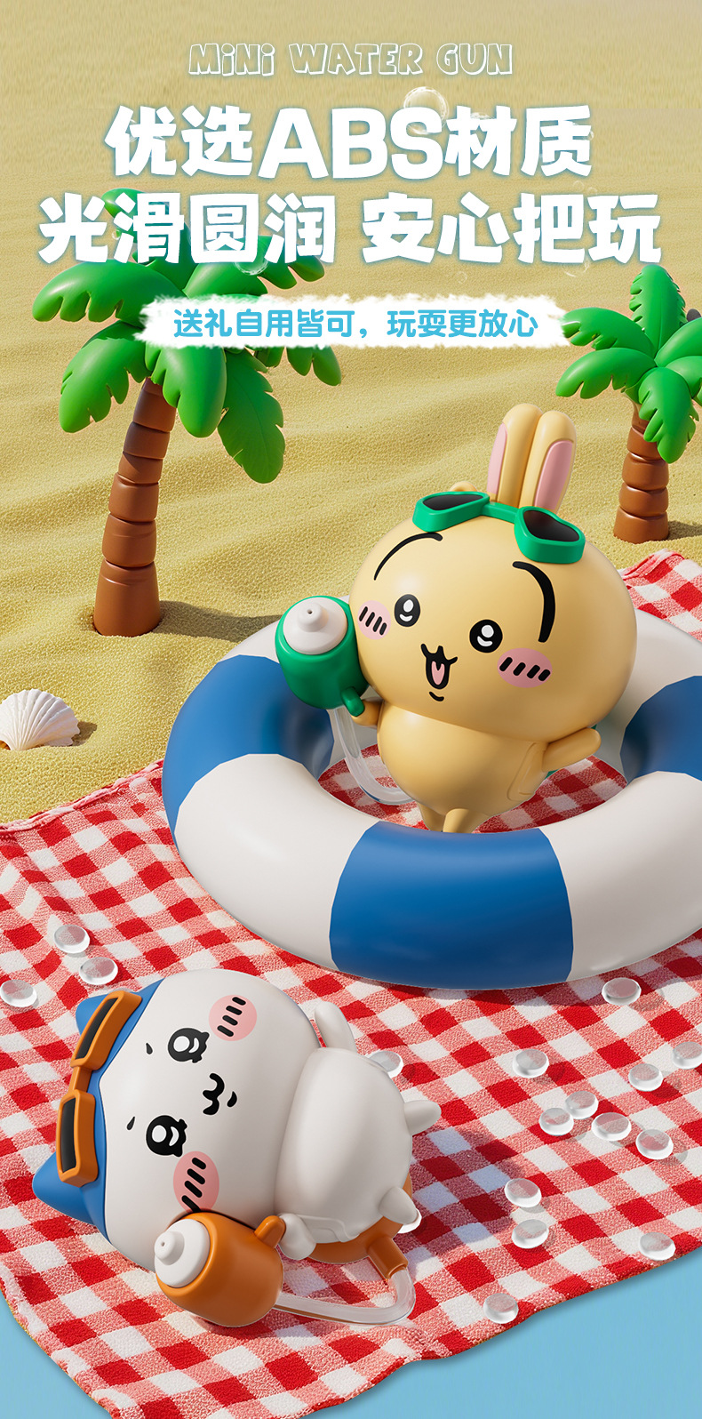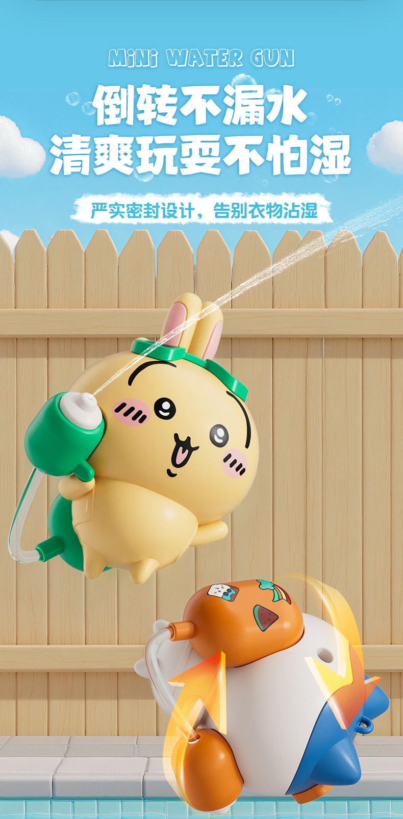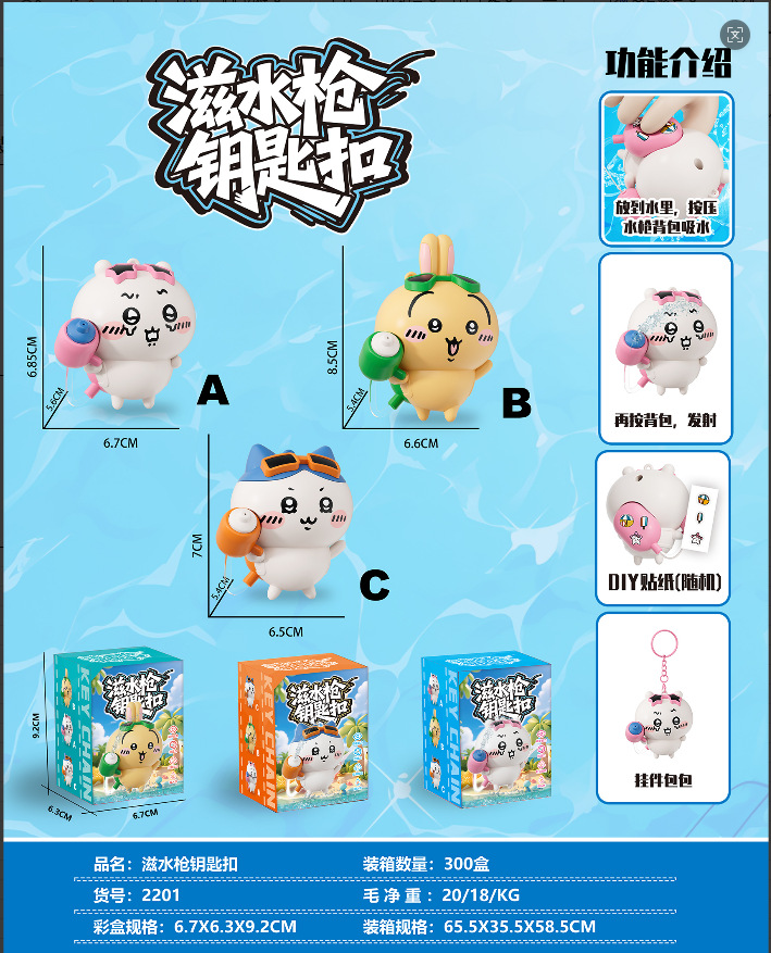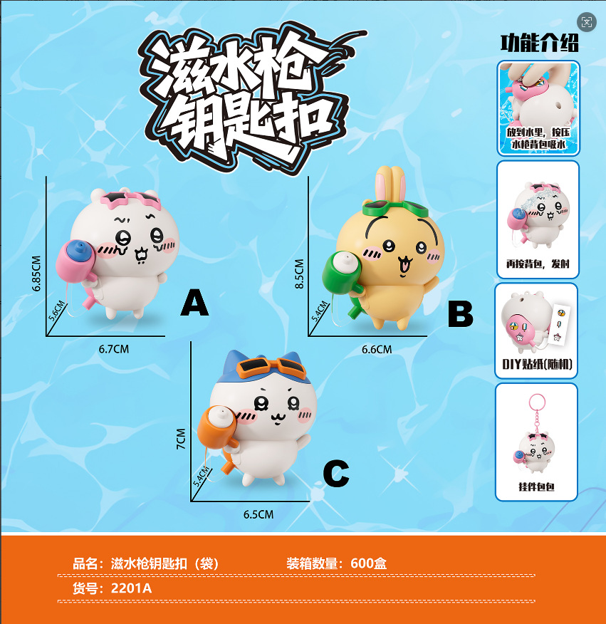 创意新款吉伊卡哇水枪乌萨奇萌趣儿童书包钥匙扣小水枪玩具