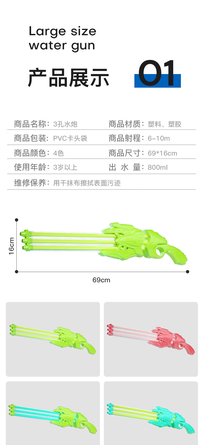 儿童水枪玩具抽拉式多孔 夏天漂流水炮神器沙滩戏水地摊大号水抽