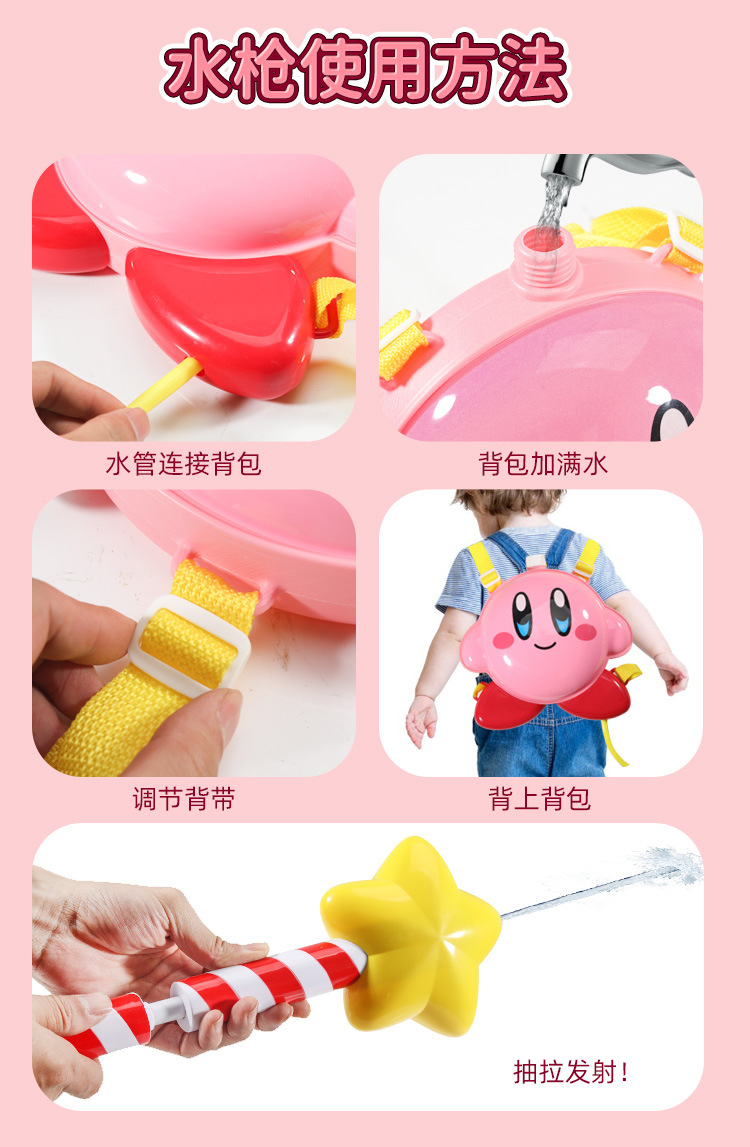 星之卡比背包水枪 儿童背包水枪玩具打水仗沙滩戏水抽拉式水枪