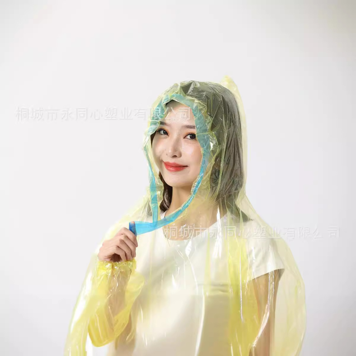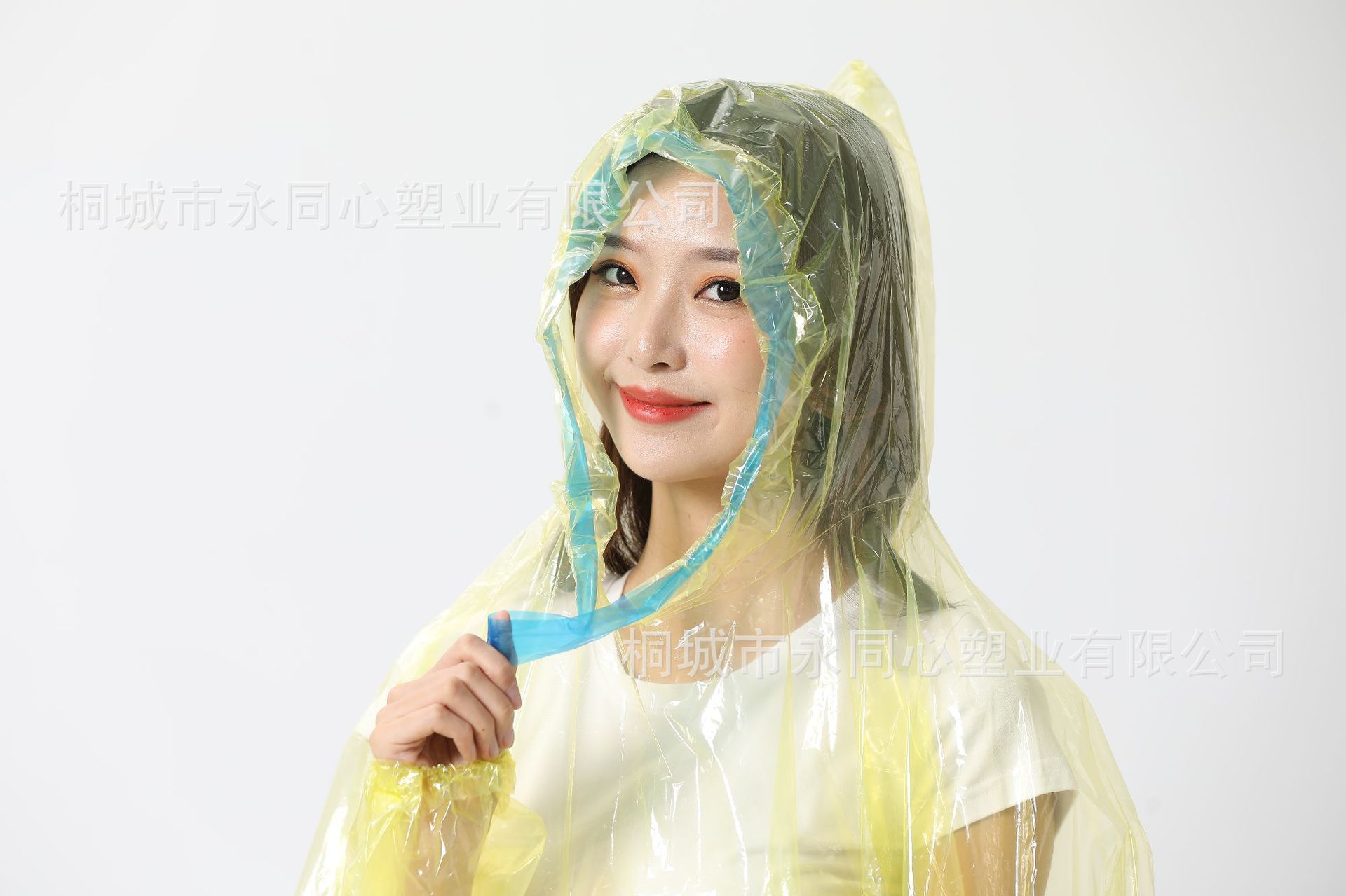 厂家直供 帽绳款袖口束口皮筋款一次性雨衣 漂流套装雨衣全身防护