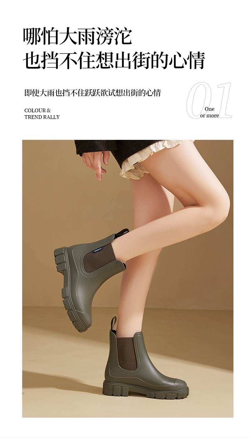 出口跨境时尚中筒雨鞋女式雨靴马丁靴防滑水靴防水鞋成人涉水套鞋