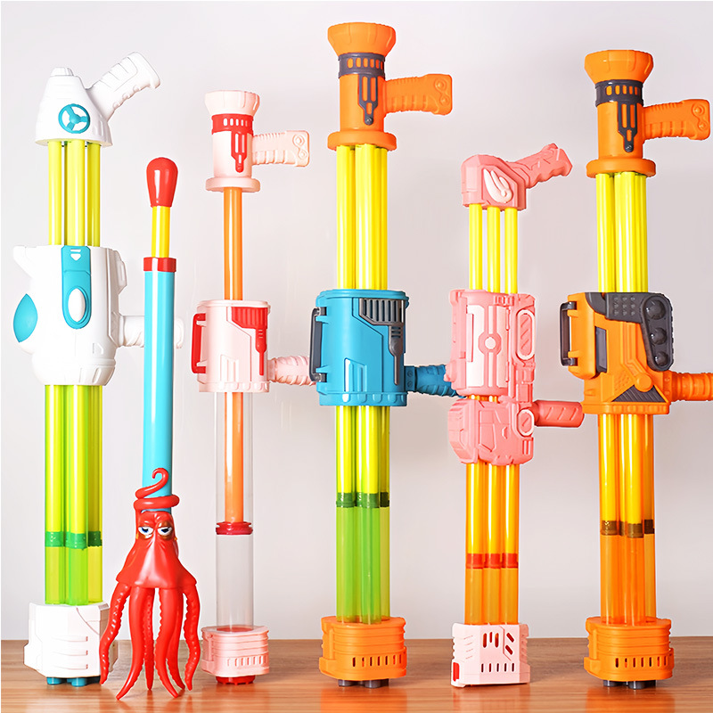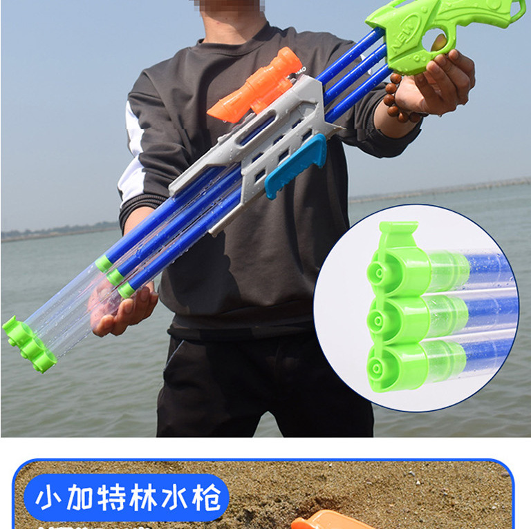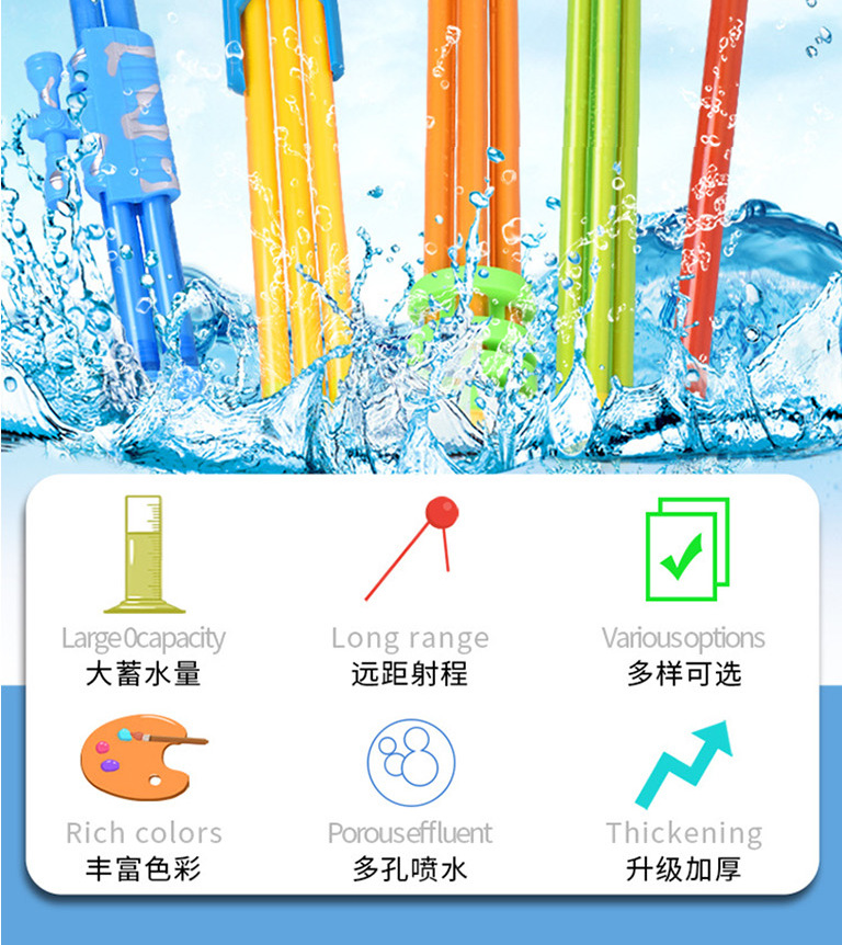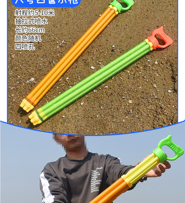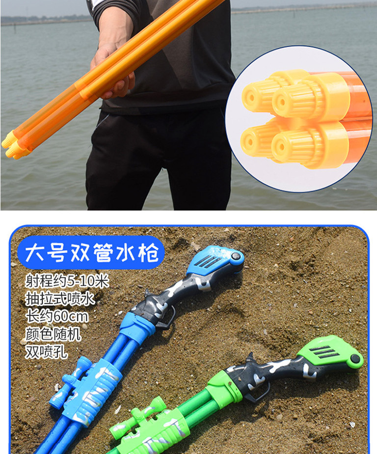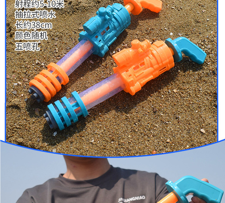 批发水枪儿童玩贝抽拉式 多孔戏水玩具地摊喷水枪 漂流自动吸水抢