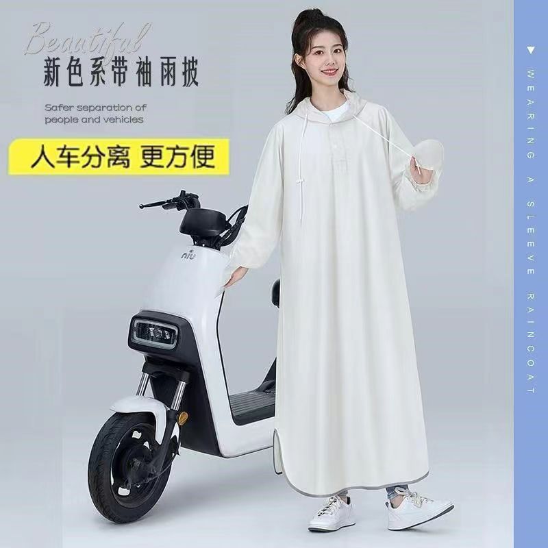 新款带袖PVC 雨披人车分离双帽檐款成人男女同款户外出行便携加厚