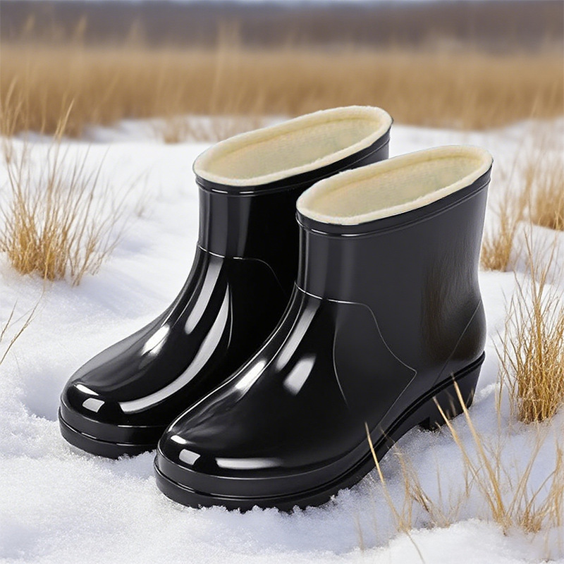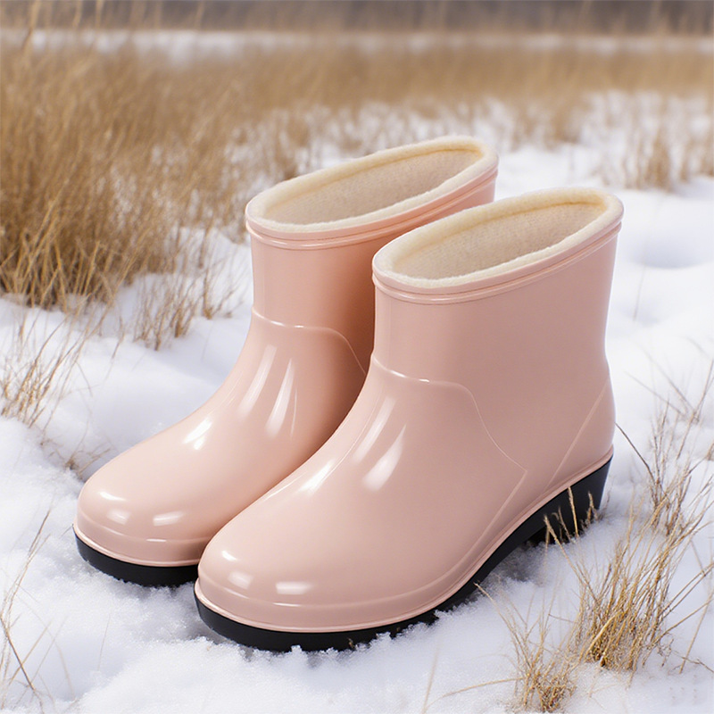 2026pvc中筒防滑冬季加绒雨鞋女款新款外穿防水厚底高筒雨靴女