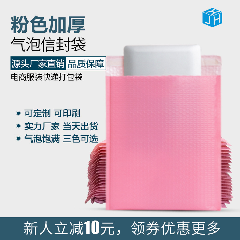 粉色气泡袋哑光加厚PE共挤膜服装打包袋防水快递袋饰品气泡信封袋