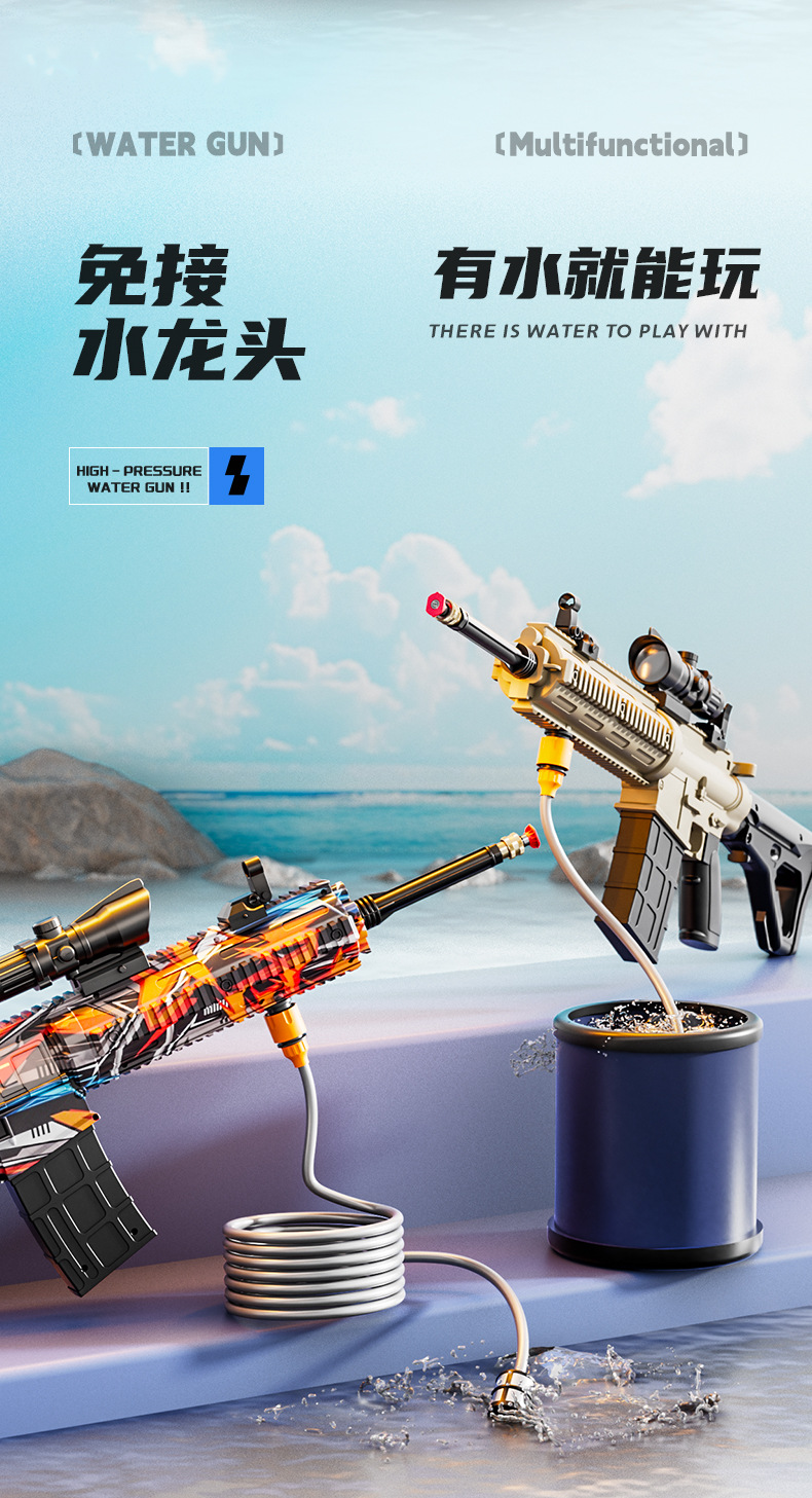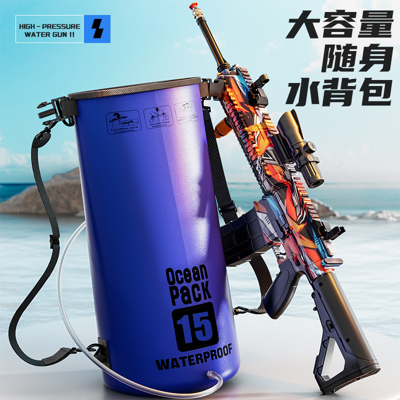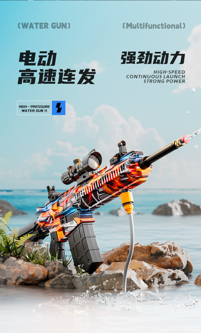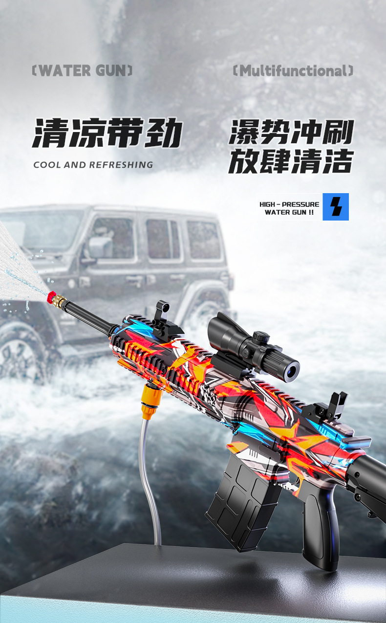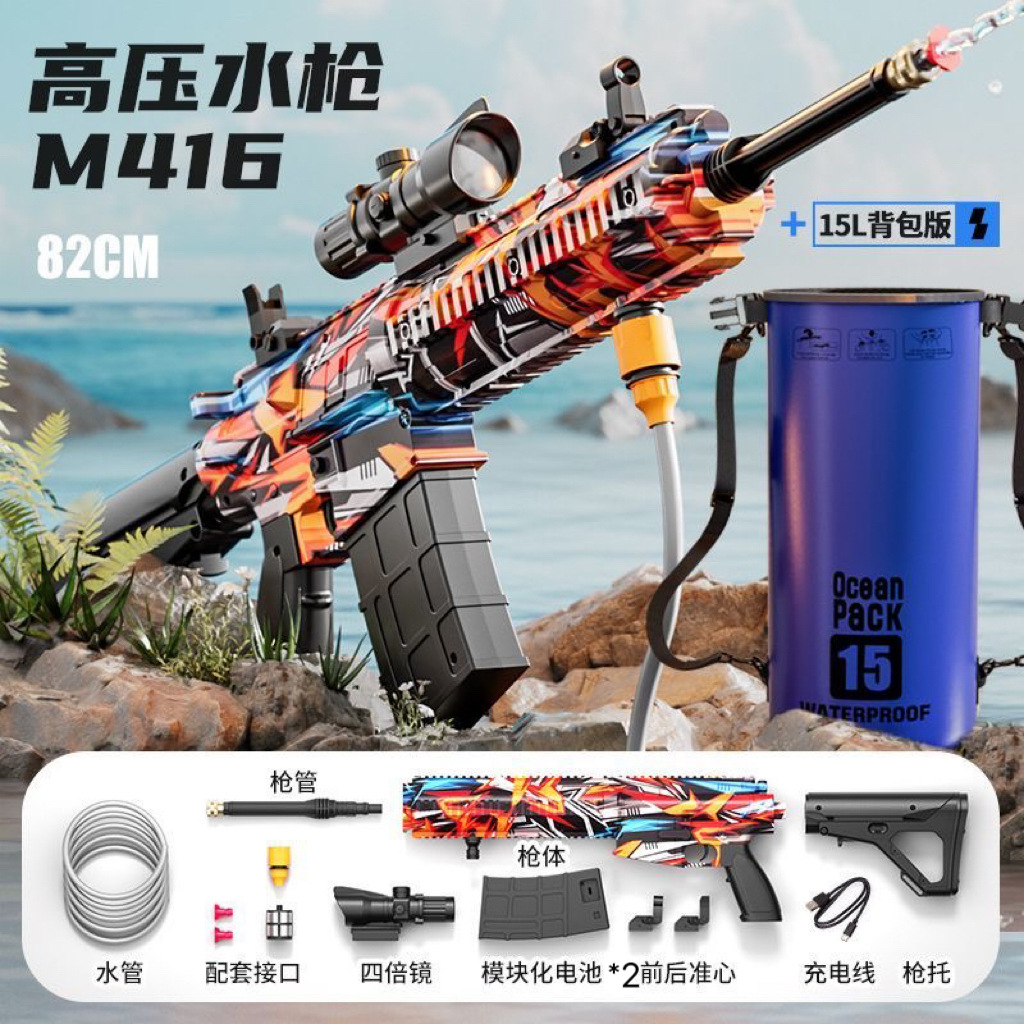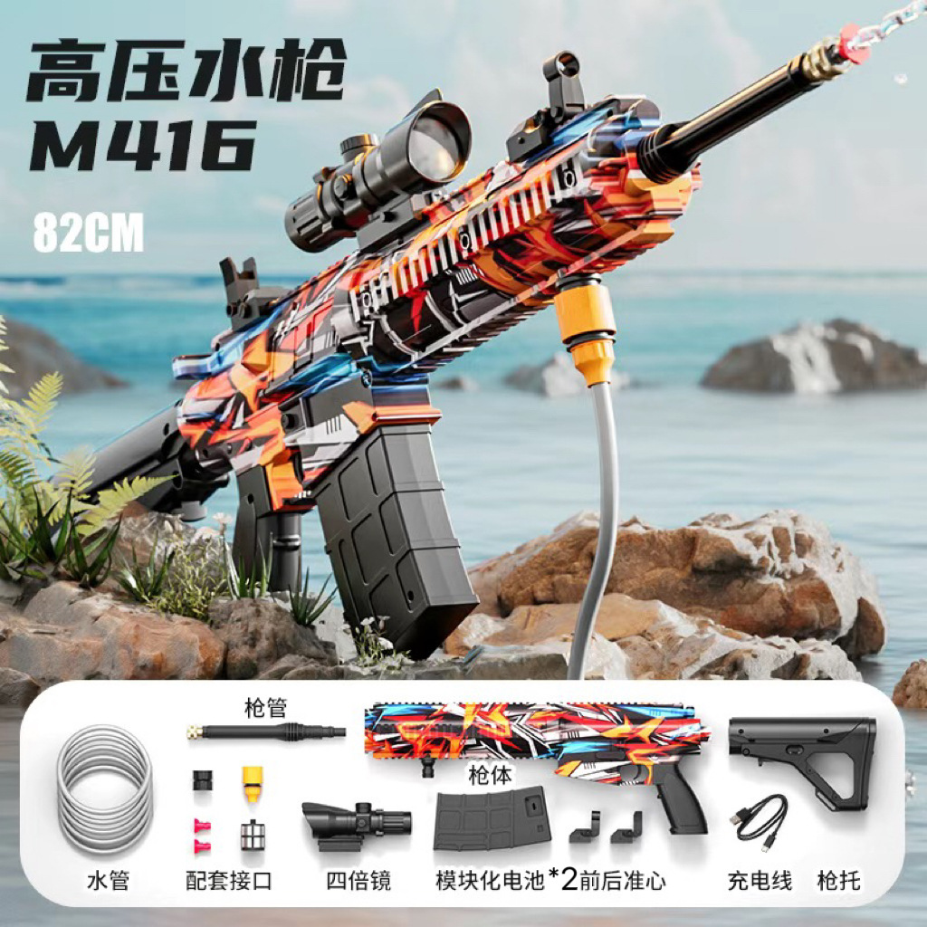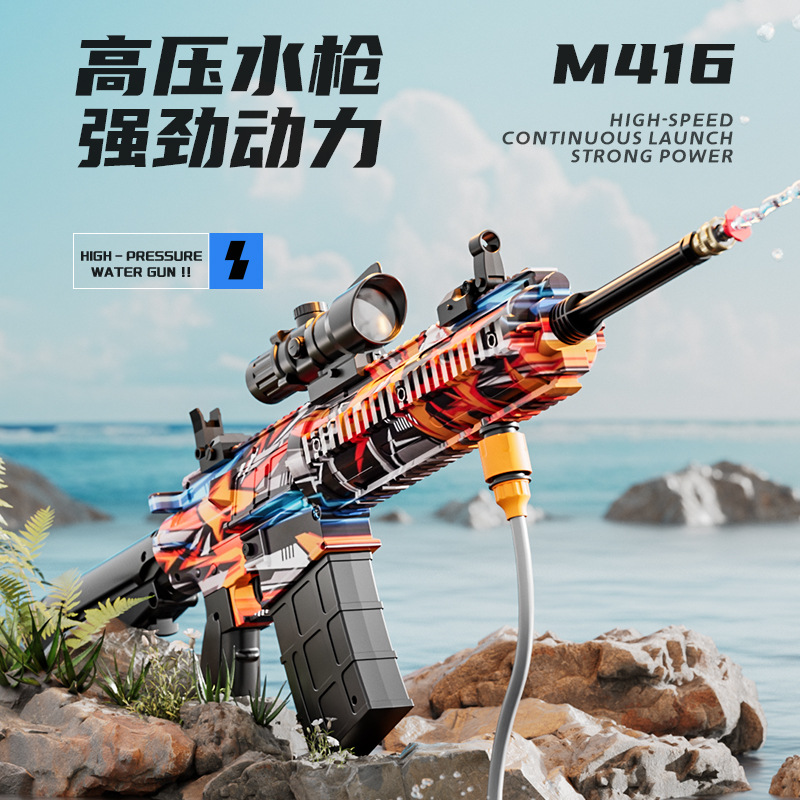 跨境M416高压强水枪多功能电动连发喷水枪儿童泼水节打水仗玩具抢