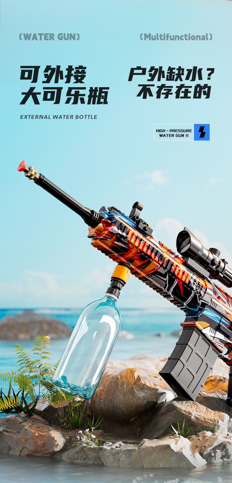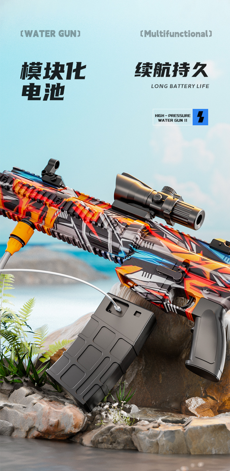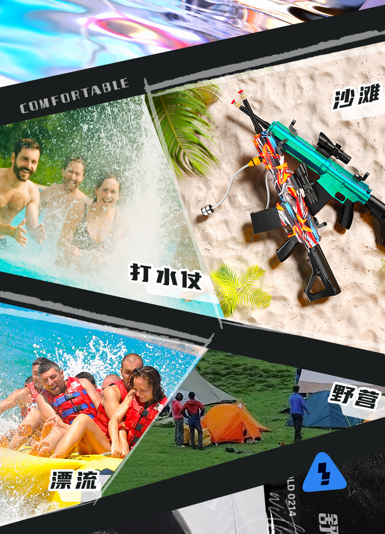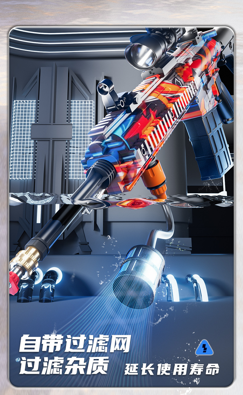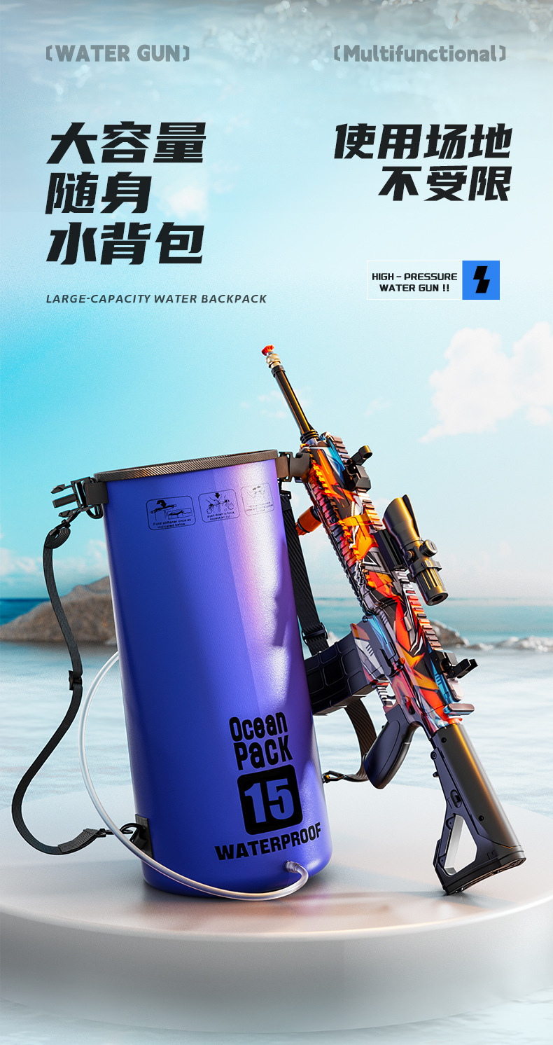 跨境M416高压强水枪多功能电动连发喷水枪儿童泼水节打水仗玩具抢