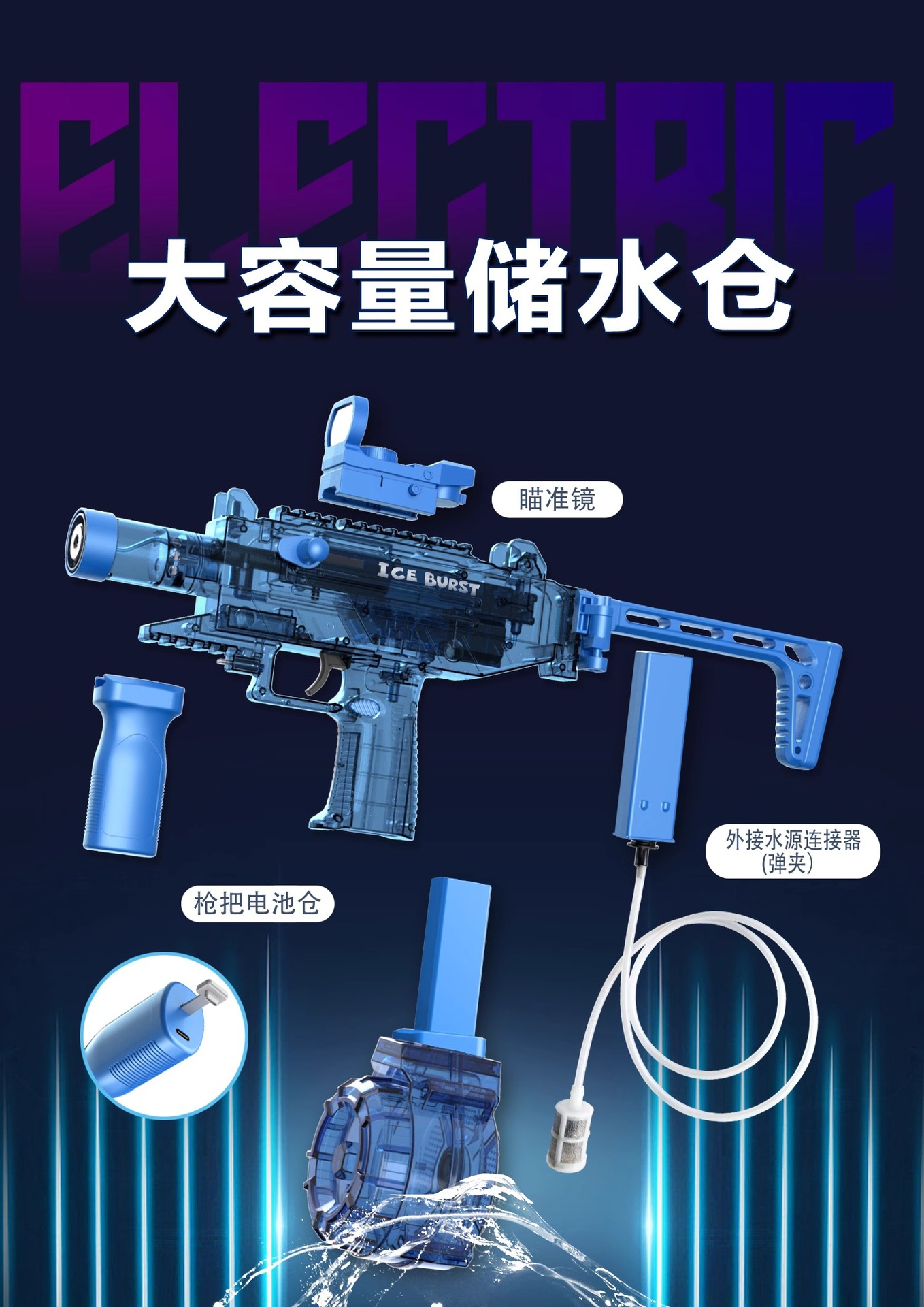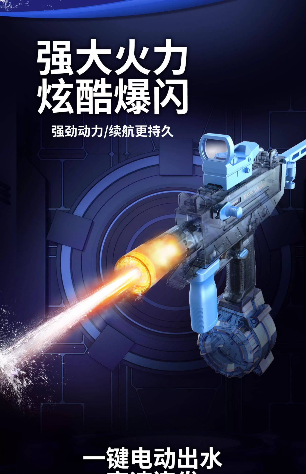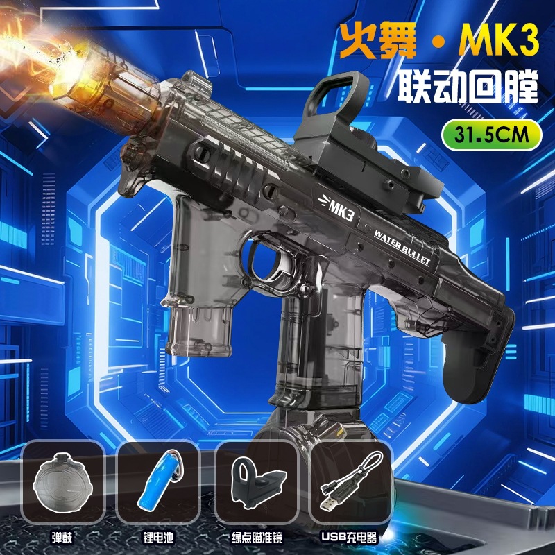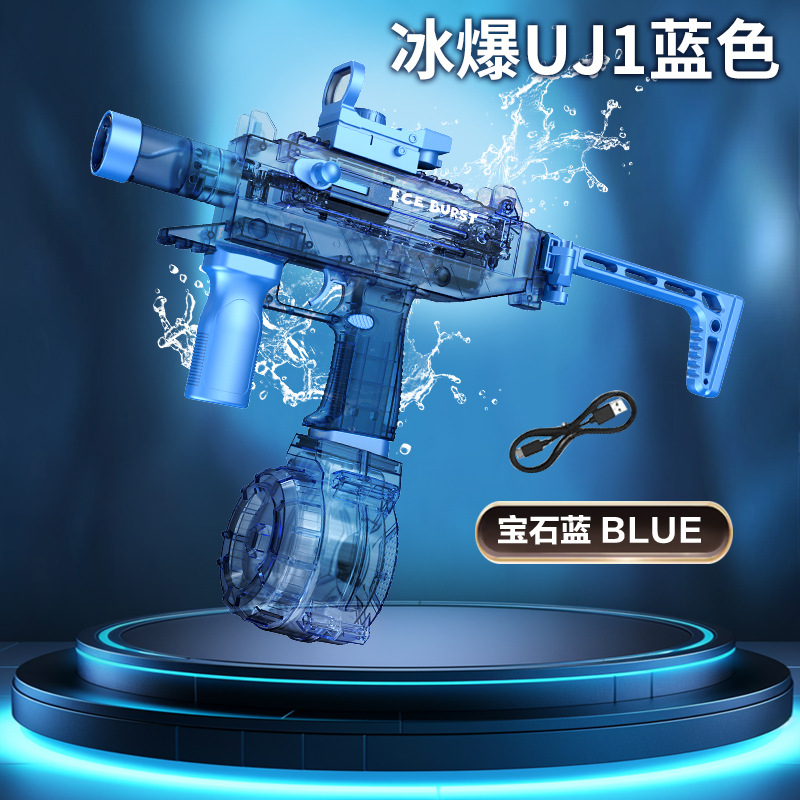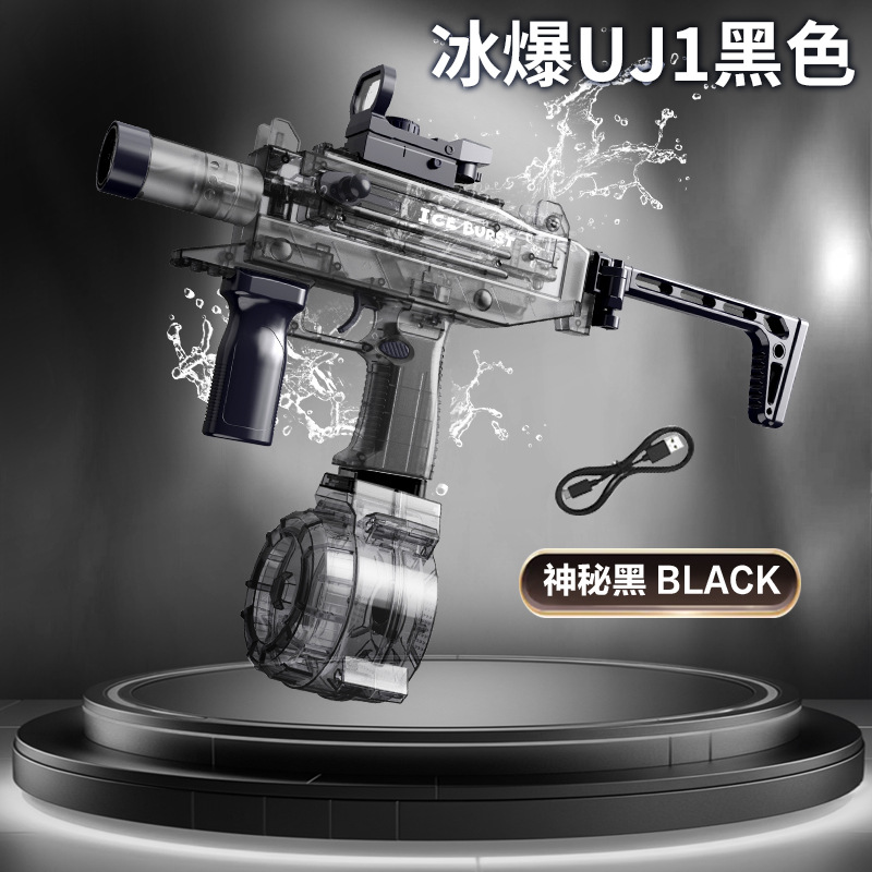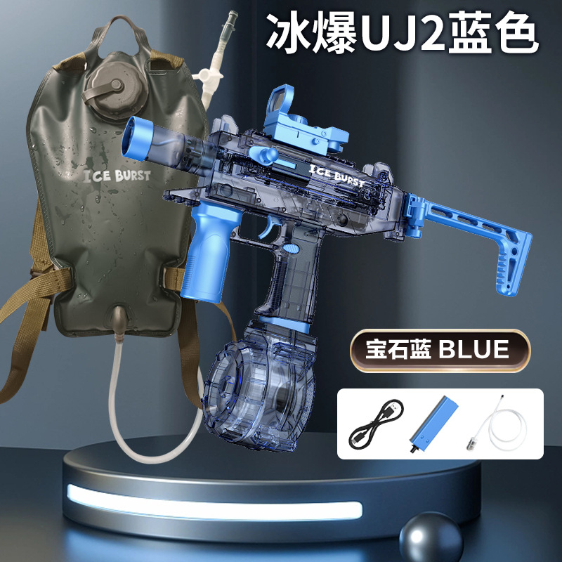 电动连发水枪火光爆闪UJ2乌兹联动回膛大容量男孩儿童戏水玩具