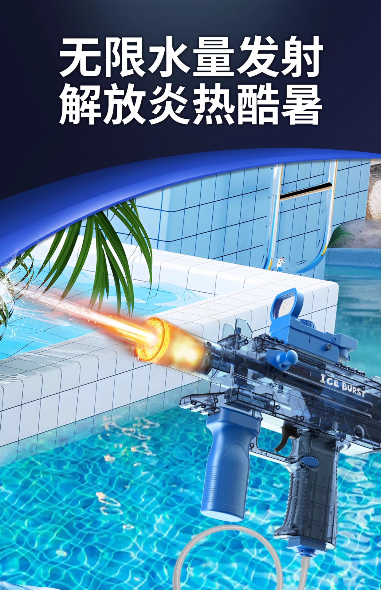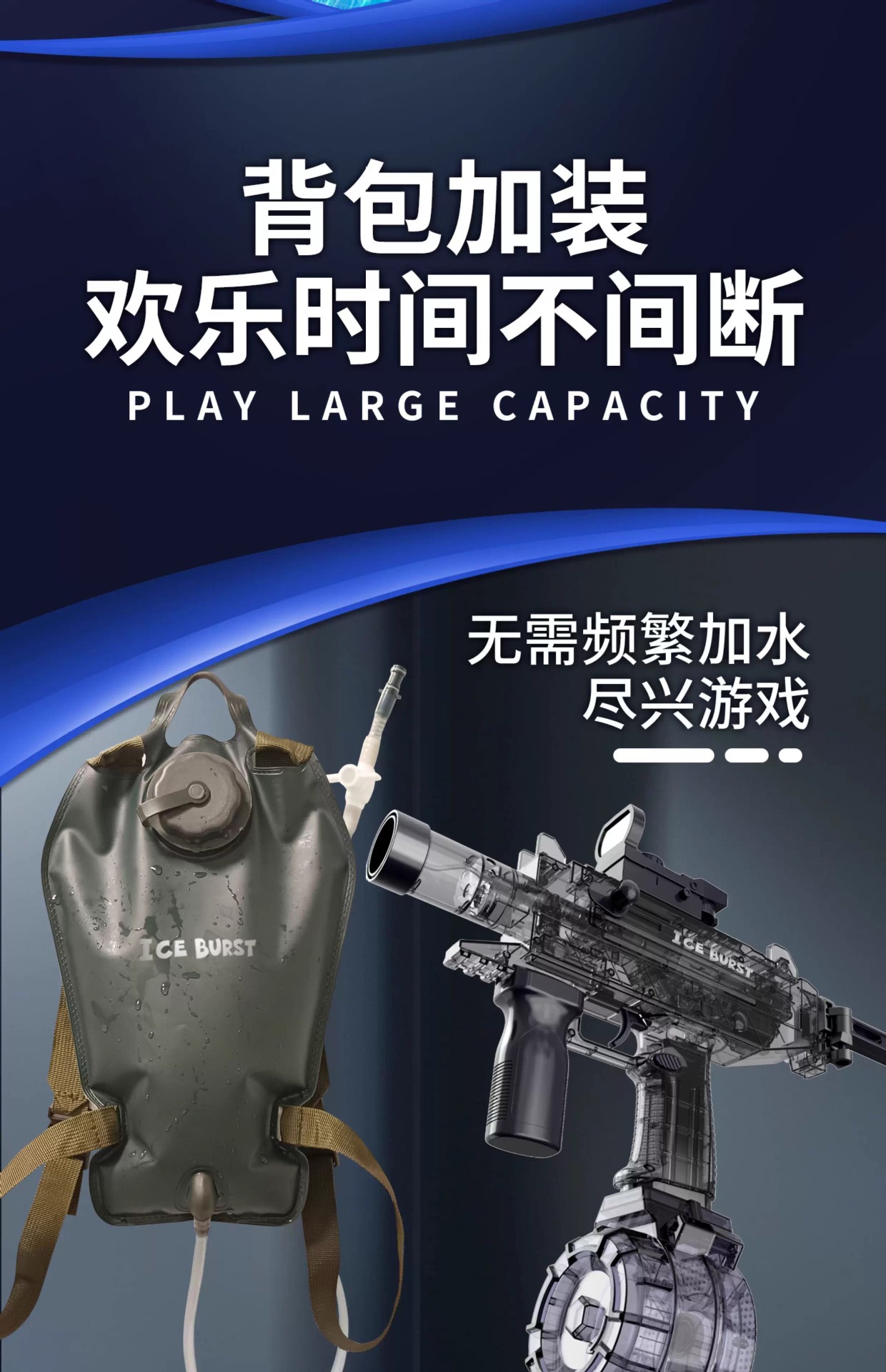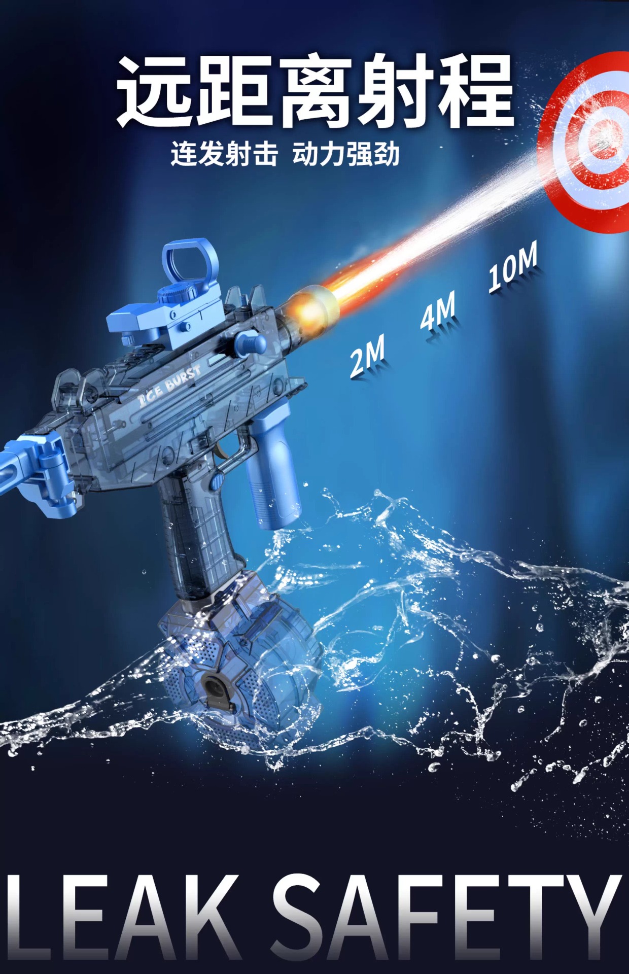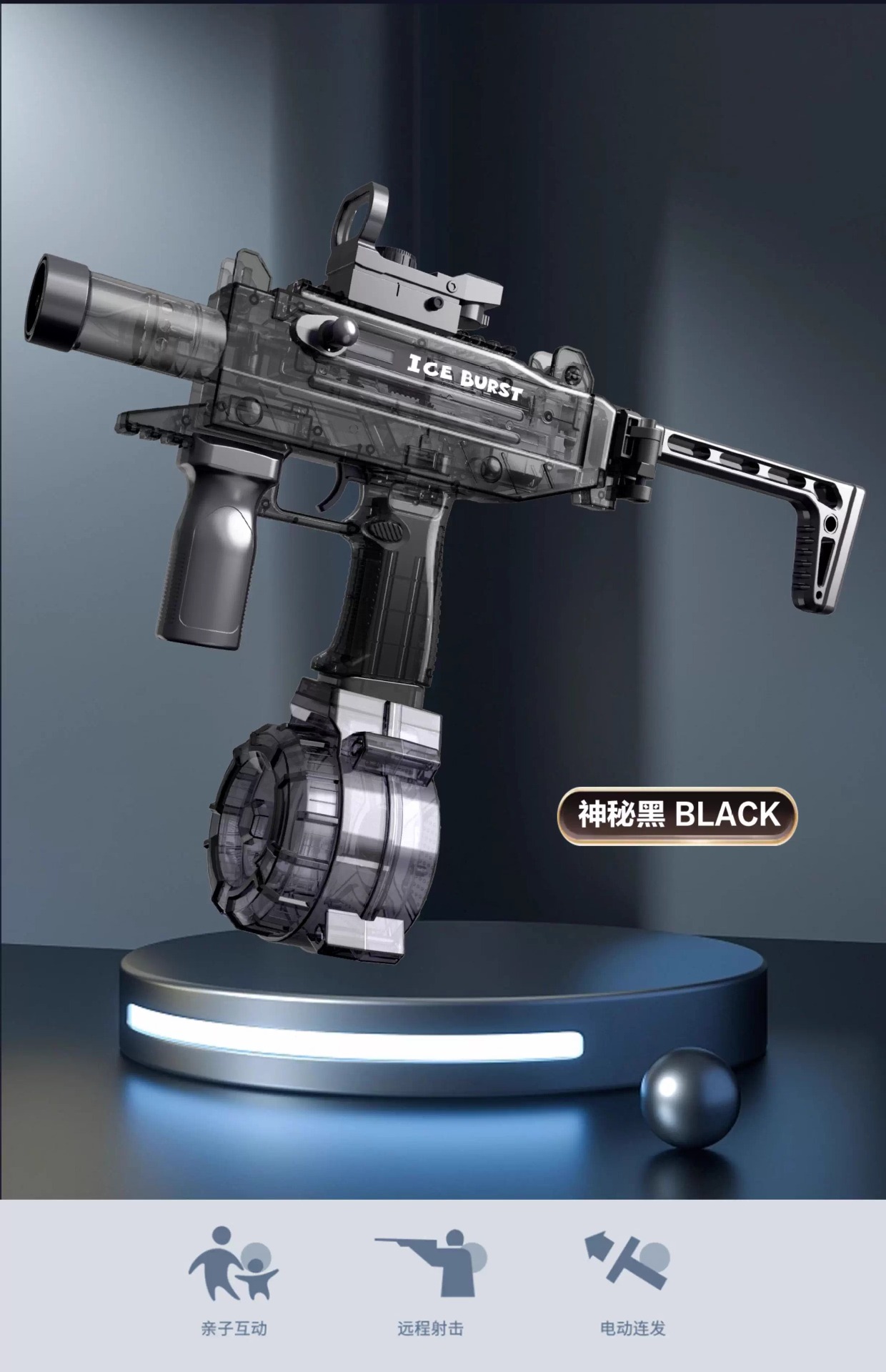 电动连发水枪火光爆闪UJ2乌兹联动回膛大容量男孩儿童戏水玩具