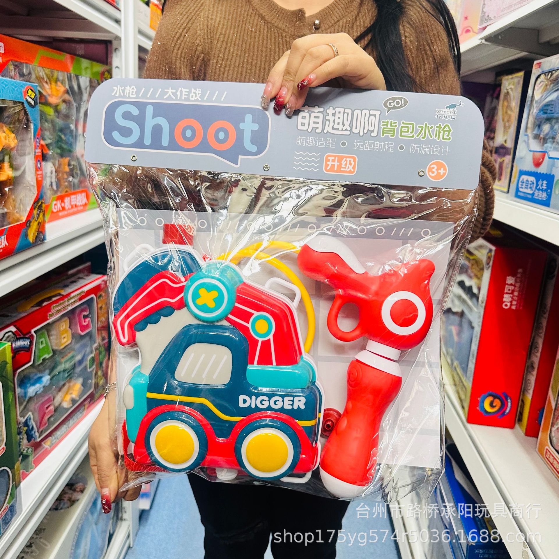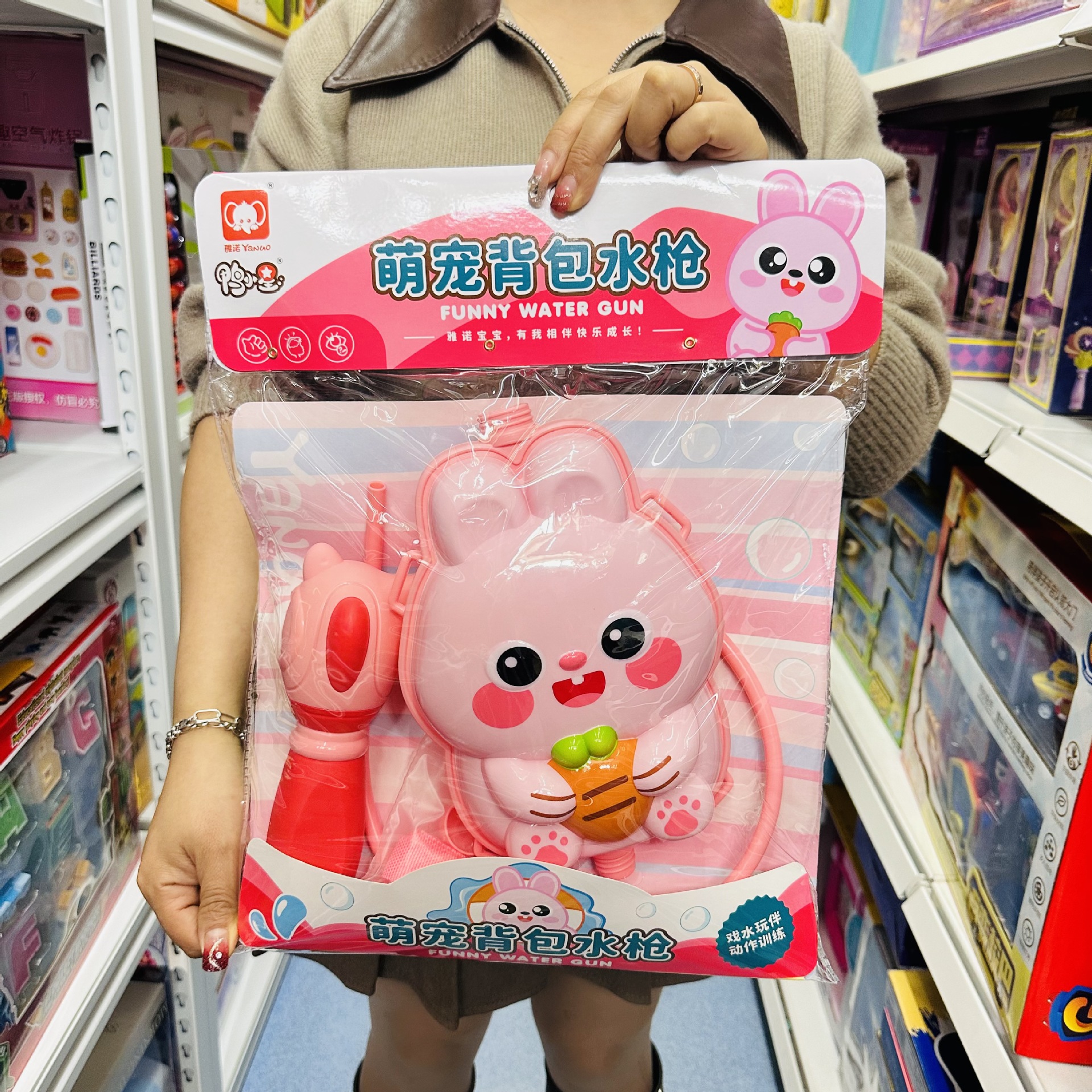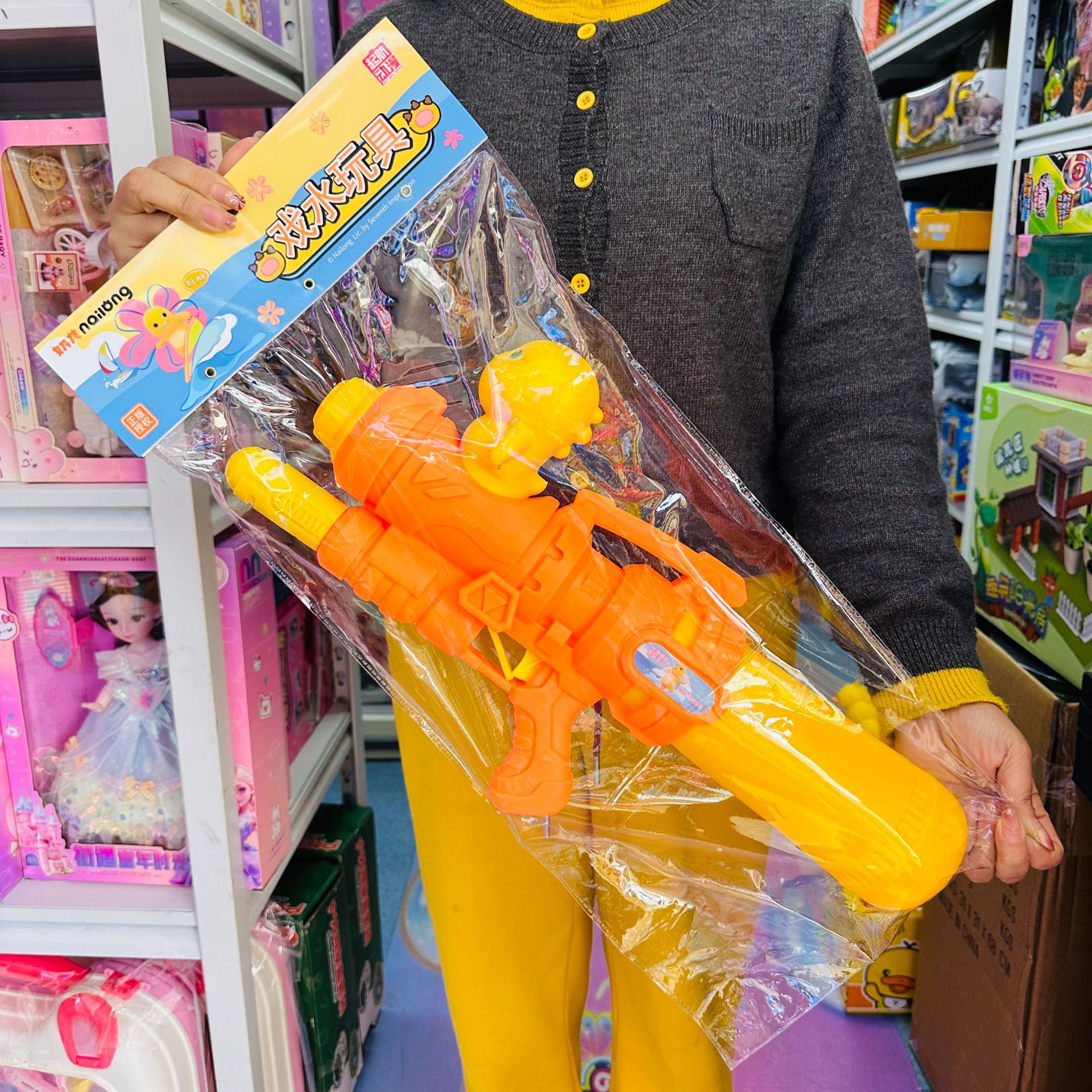 正版奶龙背包水枪喷水呲水枪棒抽拉式打水仗男女孩戏水玩具大容量