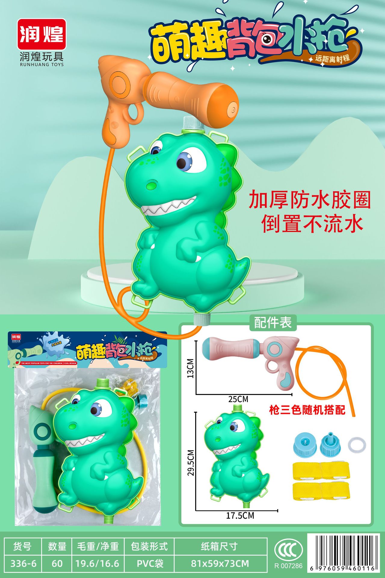 一件代发儿童背包水枪玩具抽拉式喷水恐龙背包泼水节神器夜市地摊