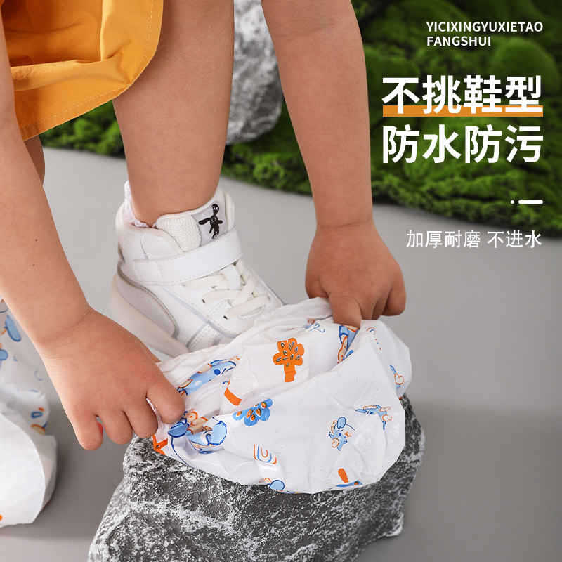 一次性防水鞋套儿童卡通防雨户外防滑加厚下雨天防沙雨靴必备高筒