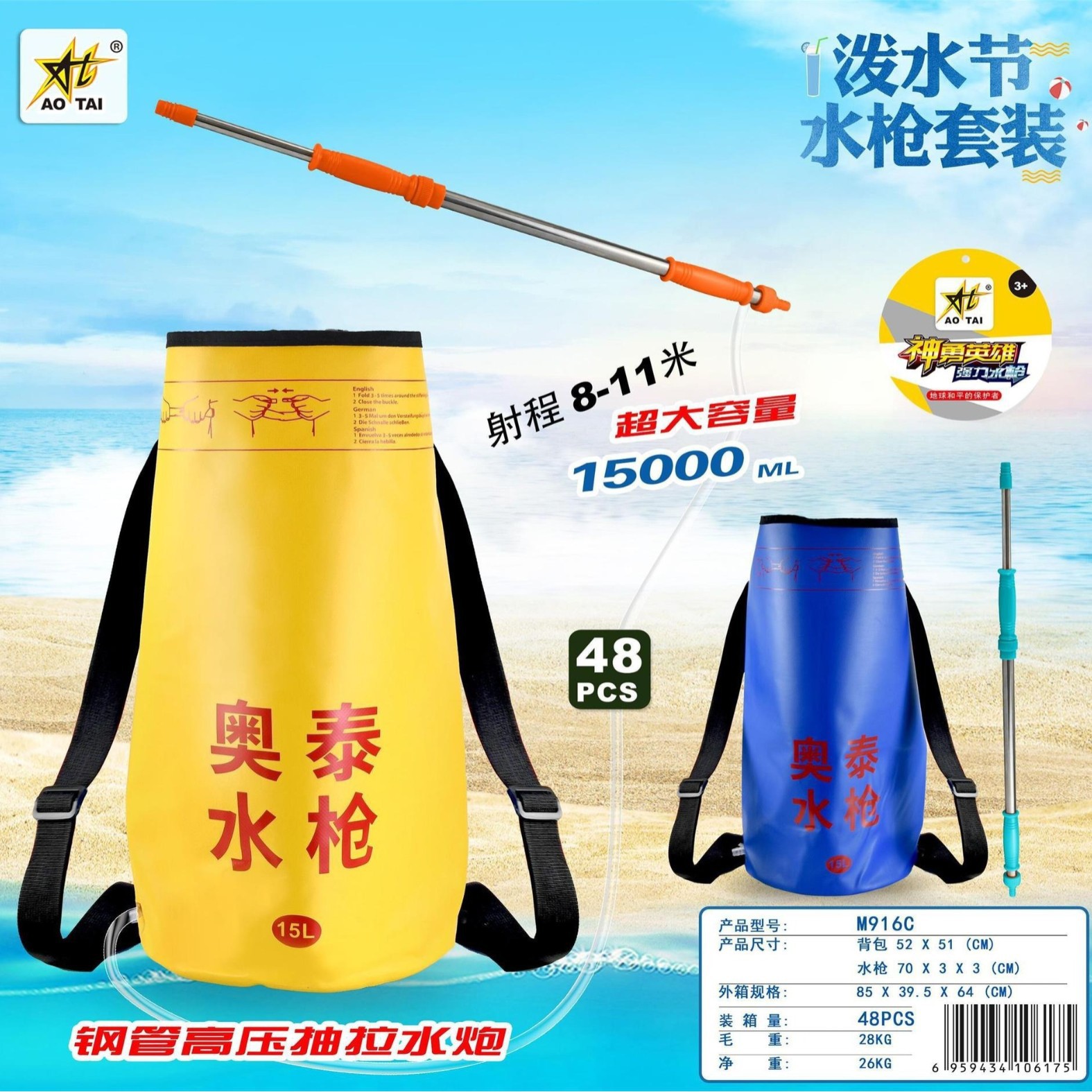 奥泰泼水节高压水炮成人大容量号跨境出口儿童水枪打水仗玩具批发