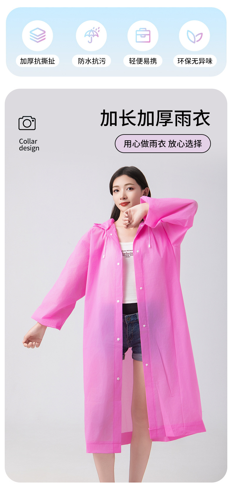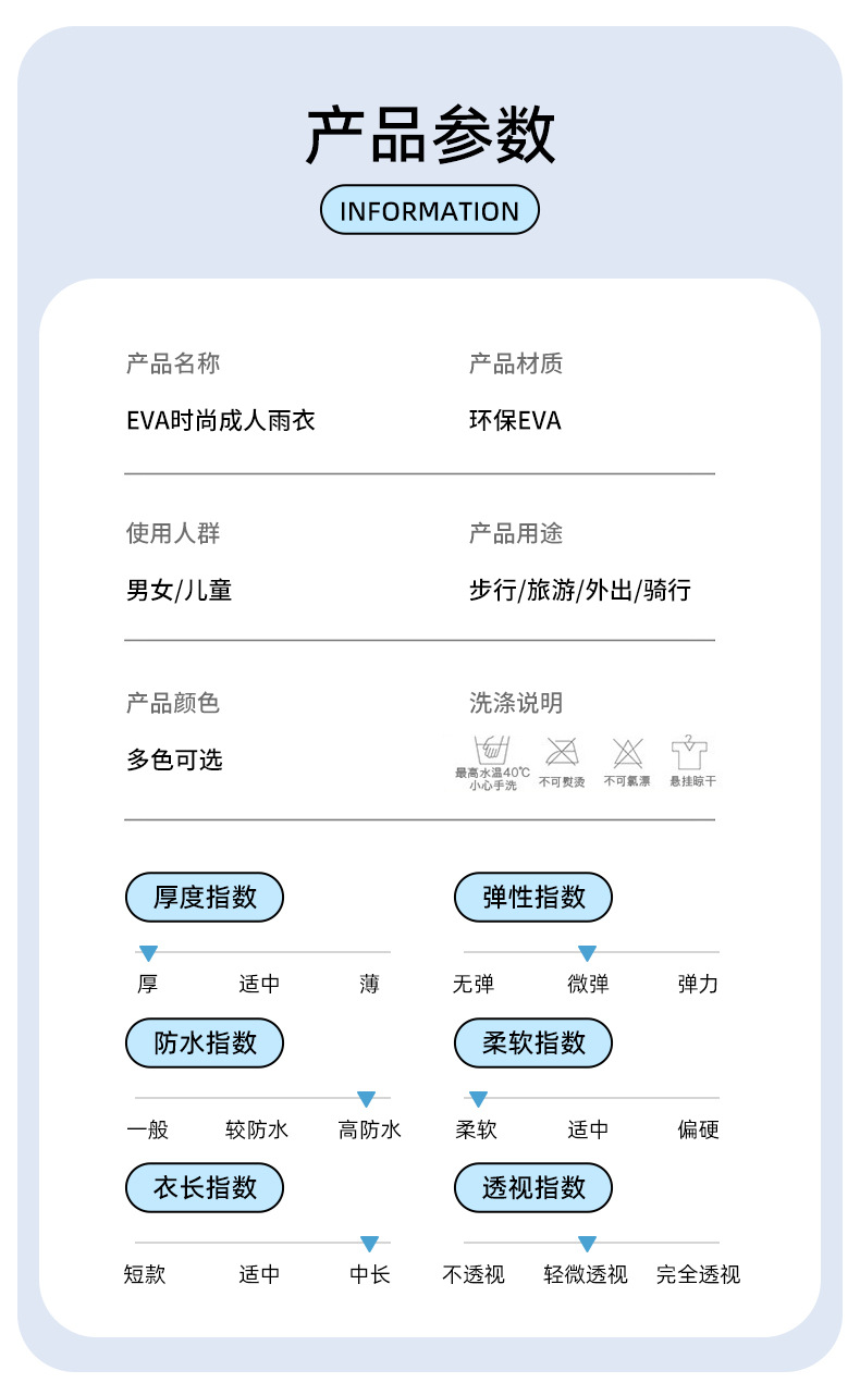 | EVA全新料+松紧袖口+防风帽绳 | USD $0.44 | 1057 piece available |