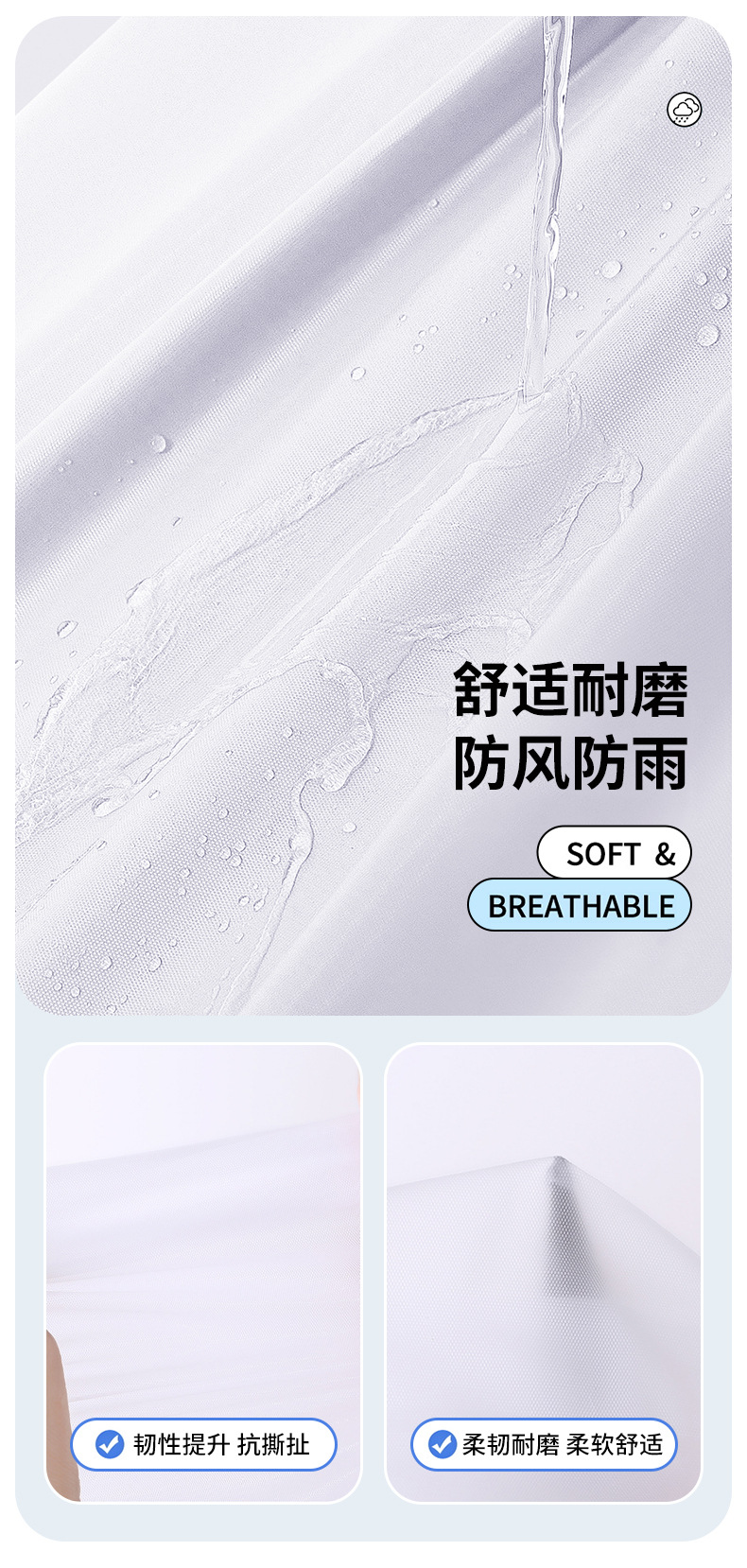 | EVA全新料+松紧袖口+防风帽绳 | USD $0.54 | 2119 piece available |