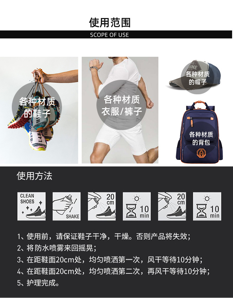 纳米防水喷雾剂 雪地靴涉水鞋靴冲锋衣服鞋面 鞋子外贸防水 防雨