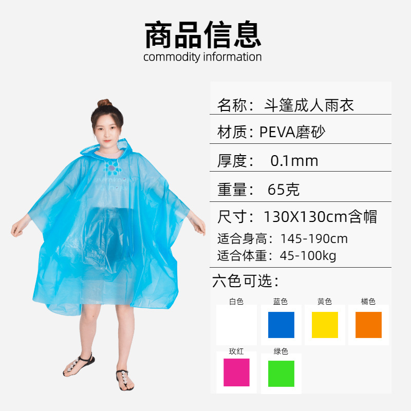 PEVA雨衣成人雨披非一次性雨衣加厚斗篷款徒步骑行旅游厂家批发
