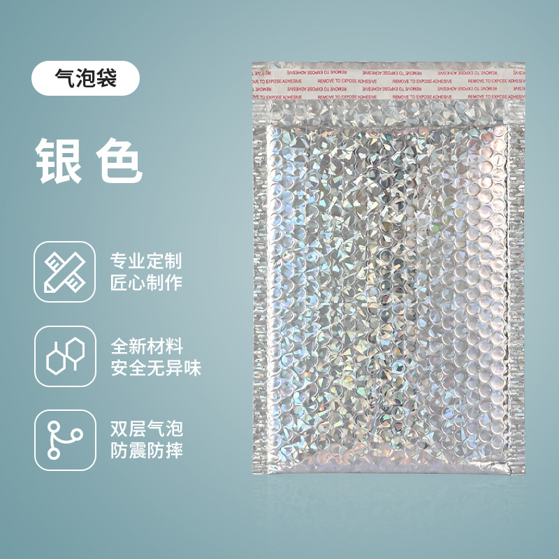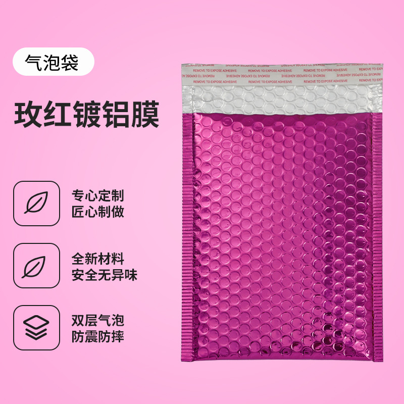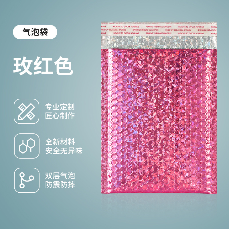 快递袋自封袋玫瑰金镭射膜 气泡袋加厚金属镀铝泡沫袋订 logo批发